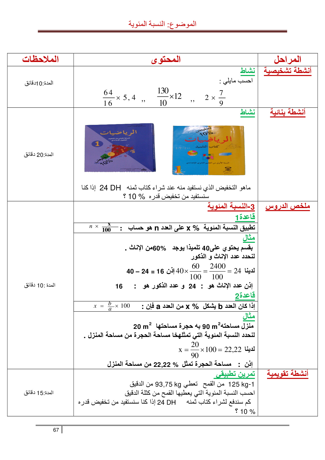 جذاذات الرياضيات للسنة الثانية إعدادي