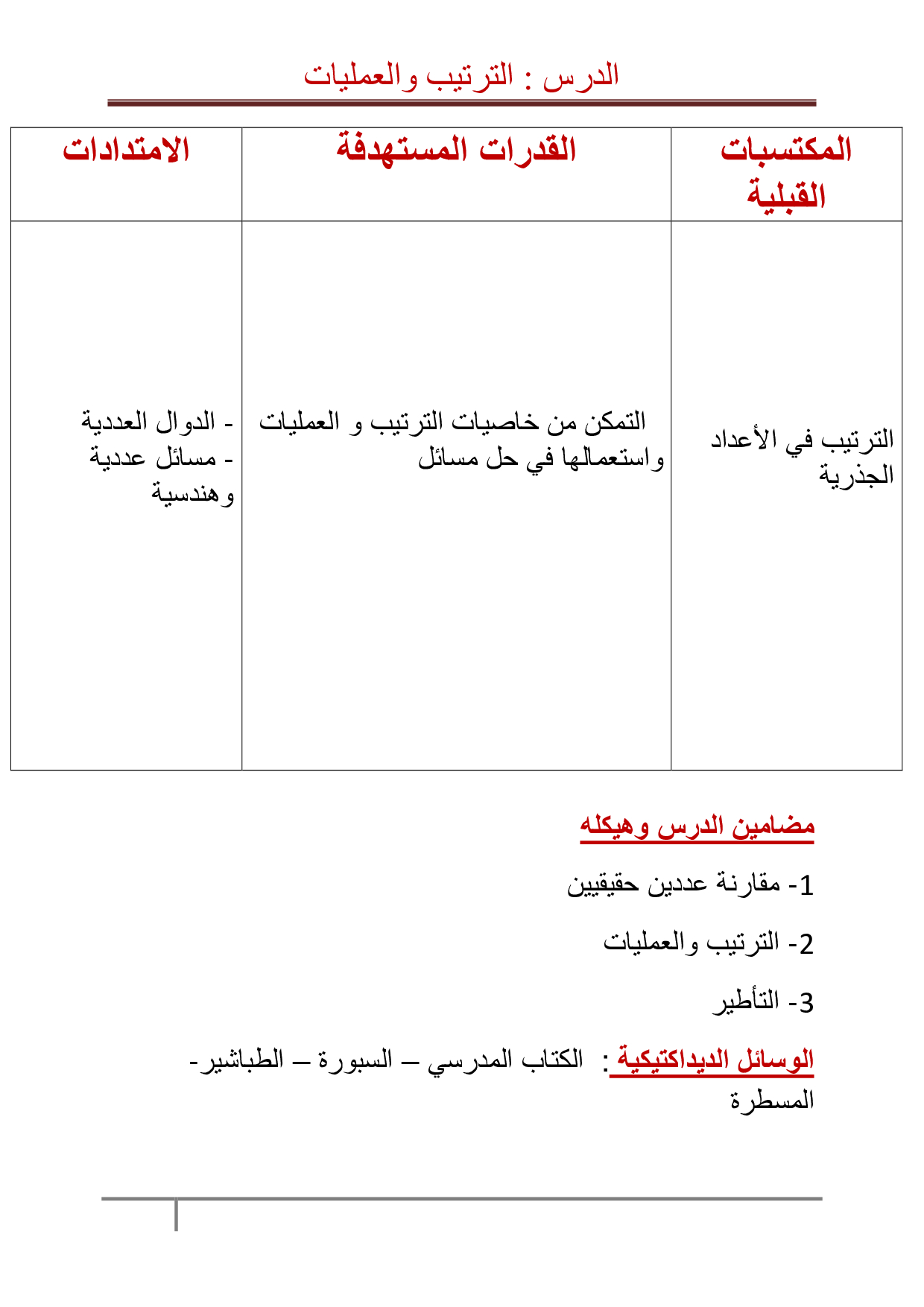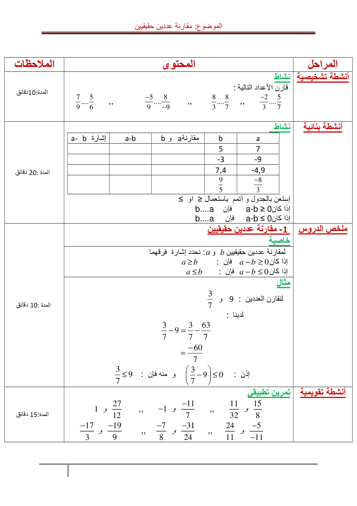 جذاذات الرياضيات للسنة الثالثة إعدادي