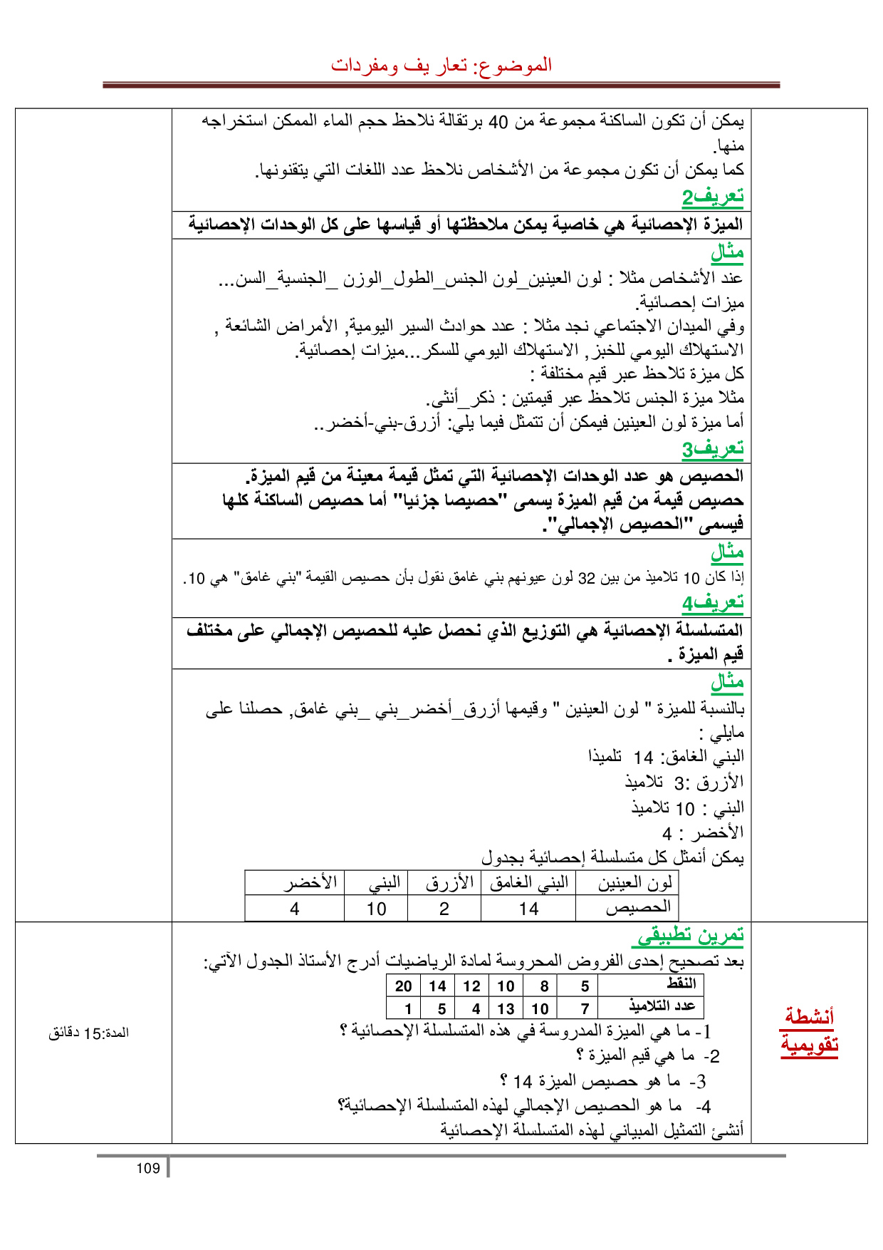 جذاذات الرياضيات للسنة الأولى إعدادي