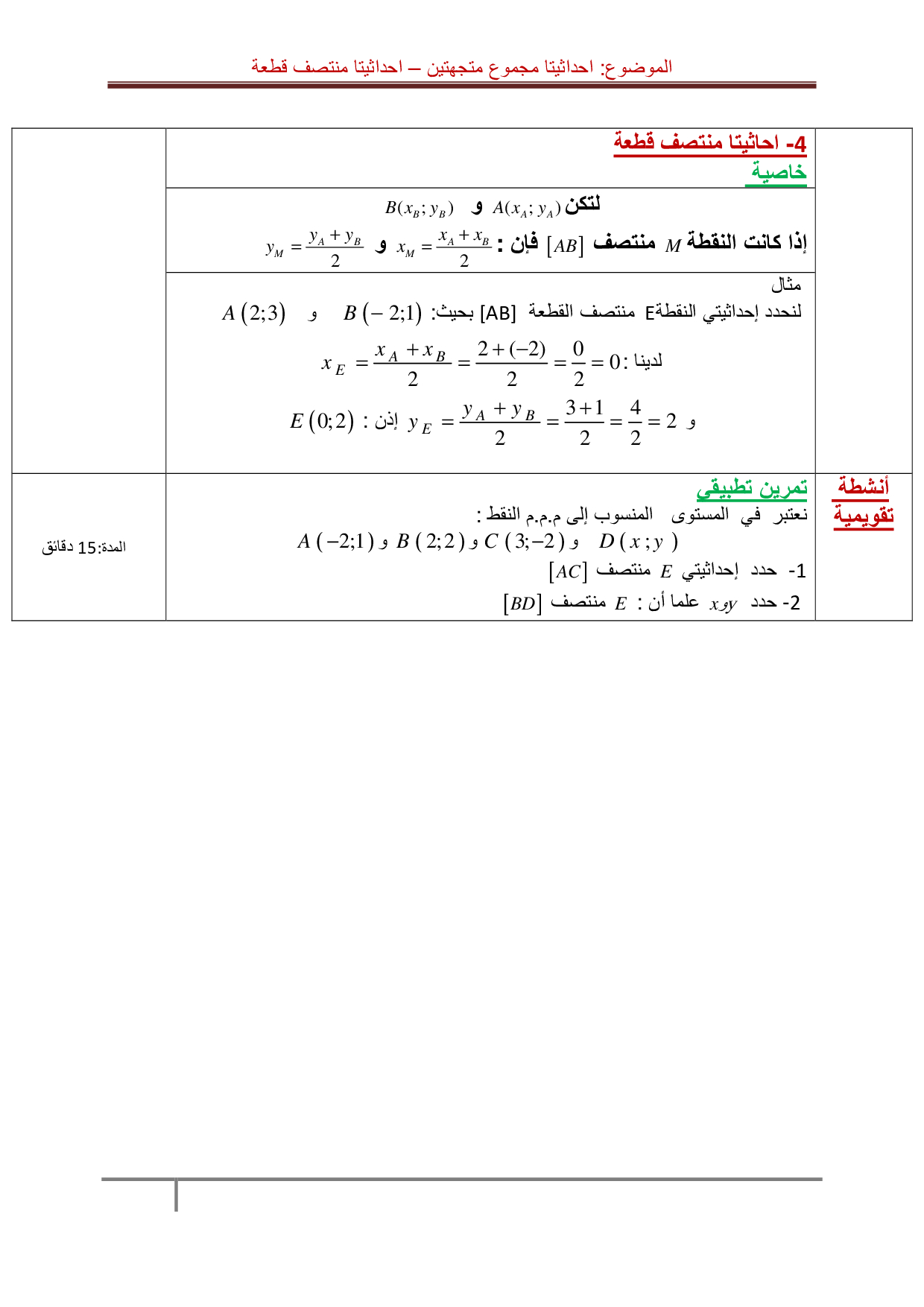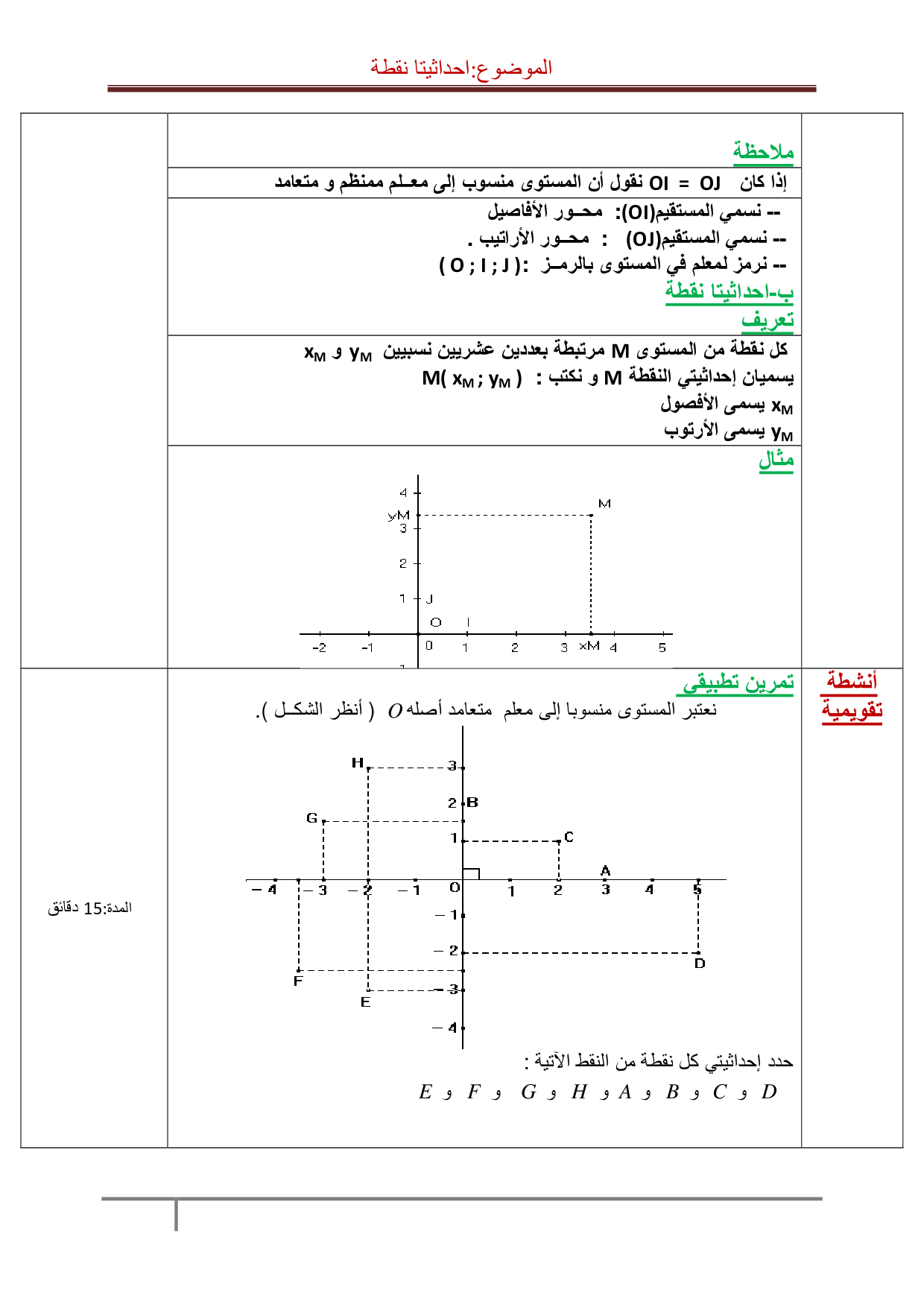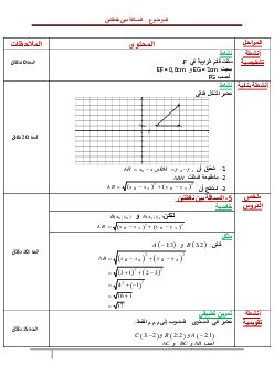 جذاذة درس المعلم في المستوى - إحداثيتا نقطة - إحداثيتا متجهة