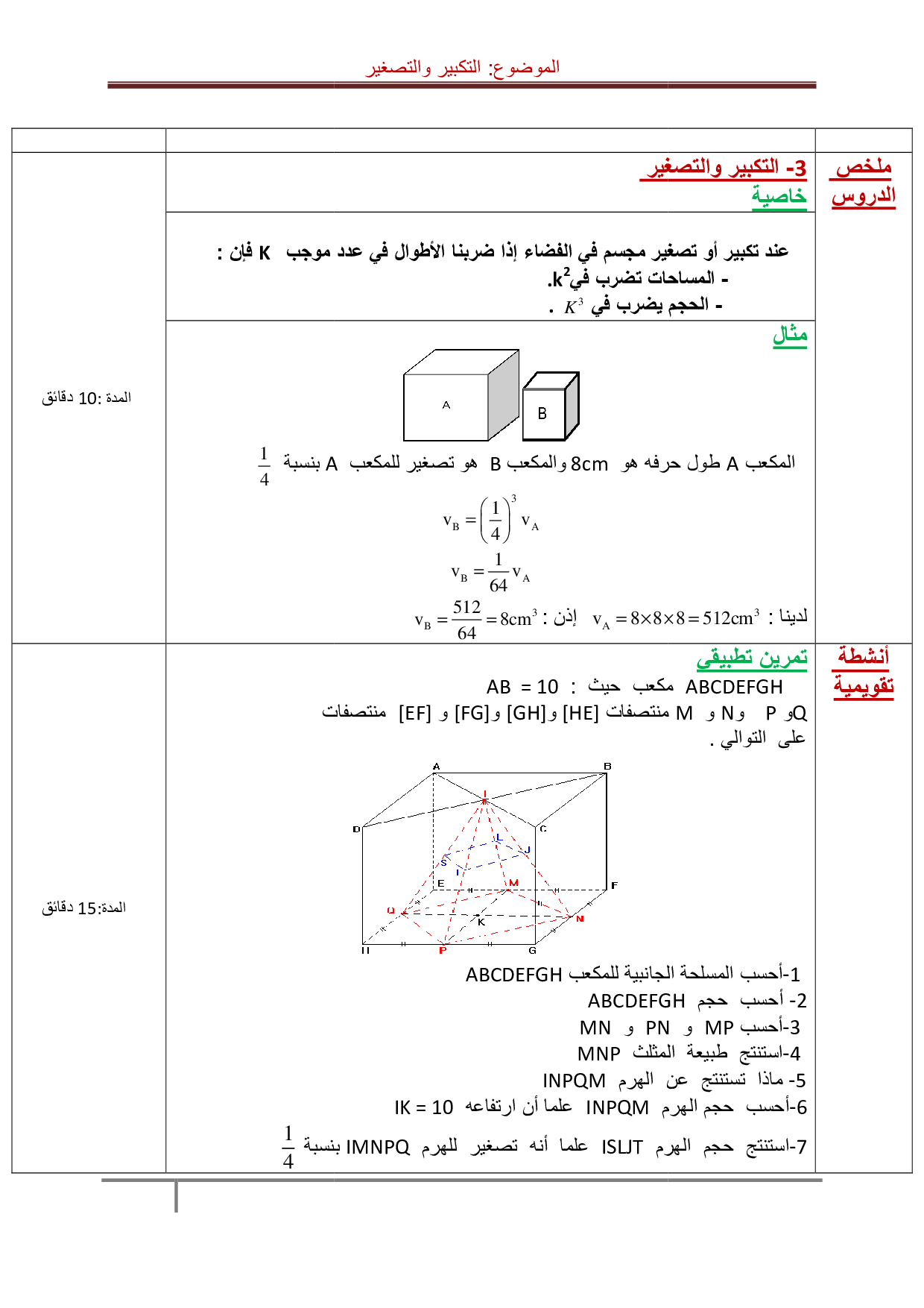 جذاذات الرياضيات للسنة الثالثة إعدادي