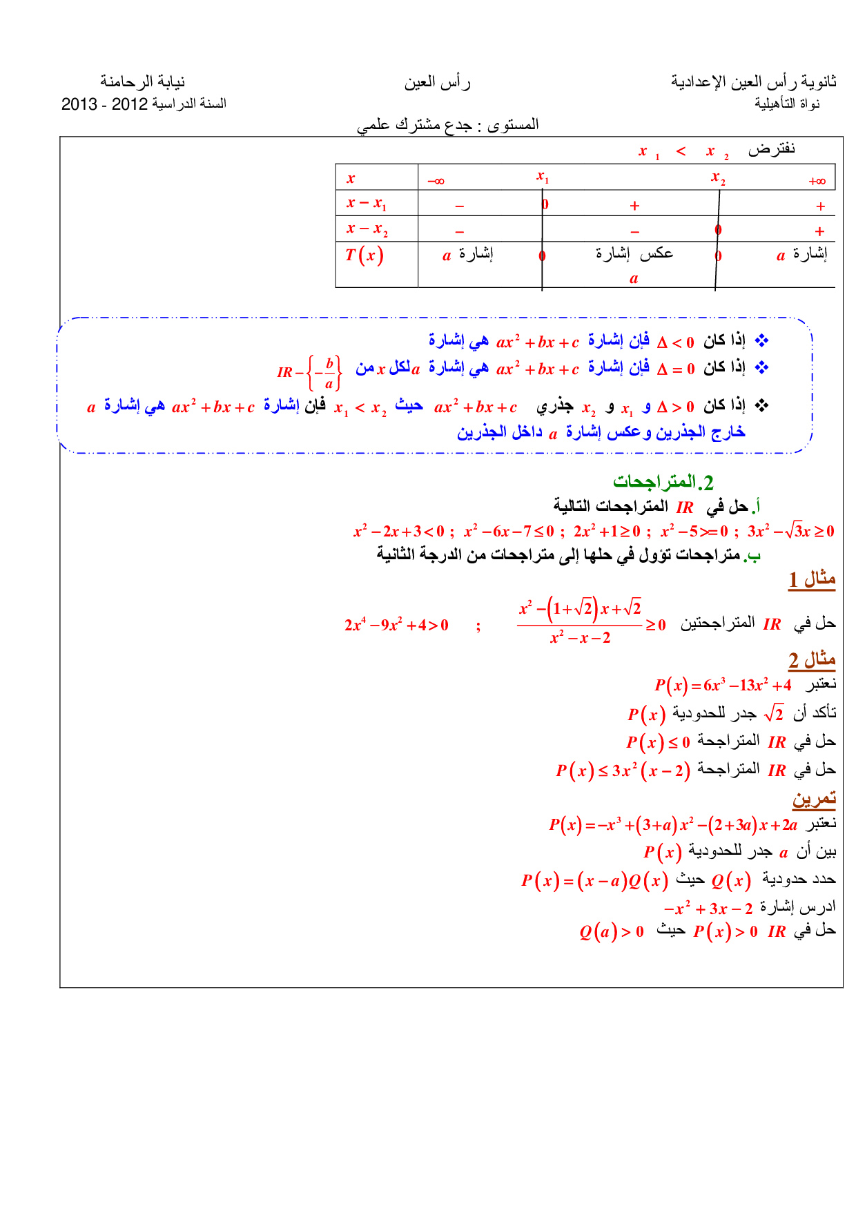 جذاذات الرياضيات للجذع المشترك العلمي والتكنولوجي