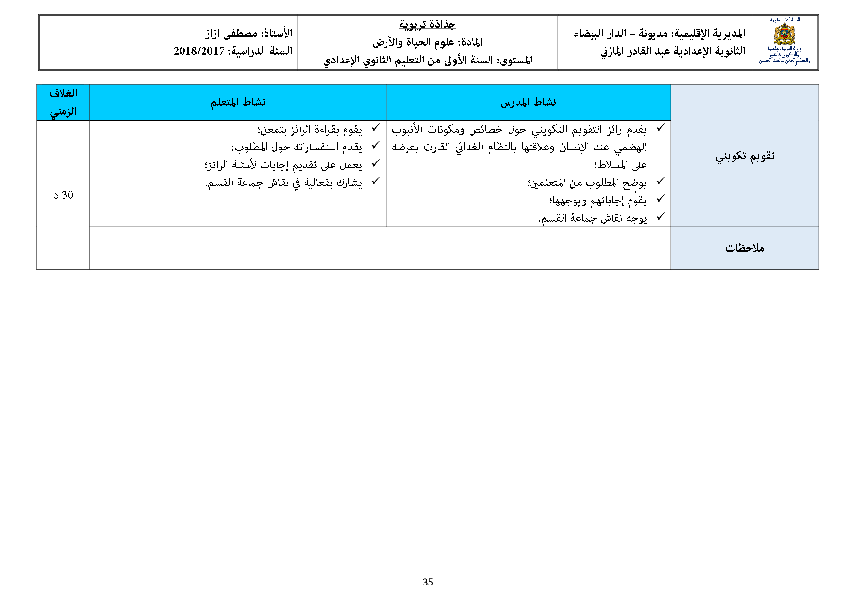 علوم الحياة والارض: الأولى إعدادي