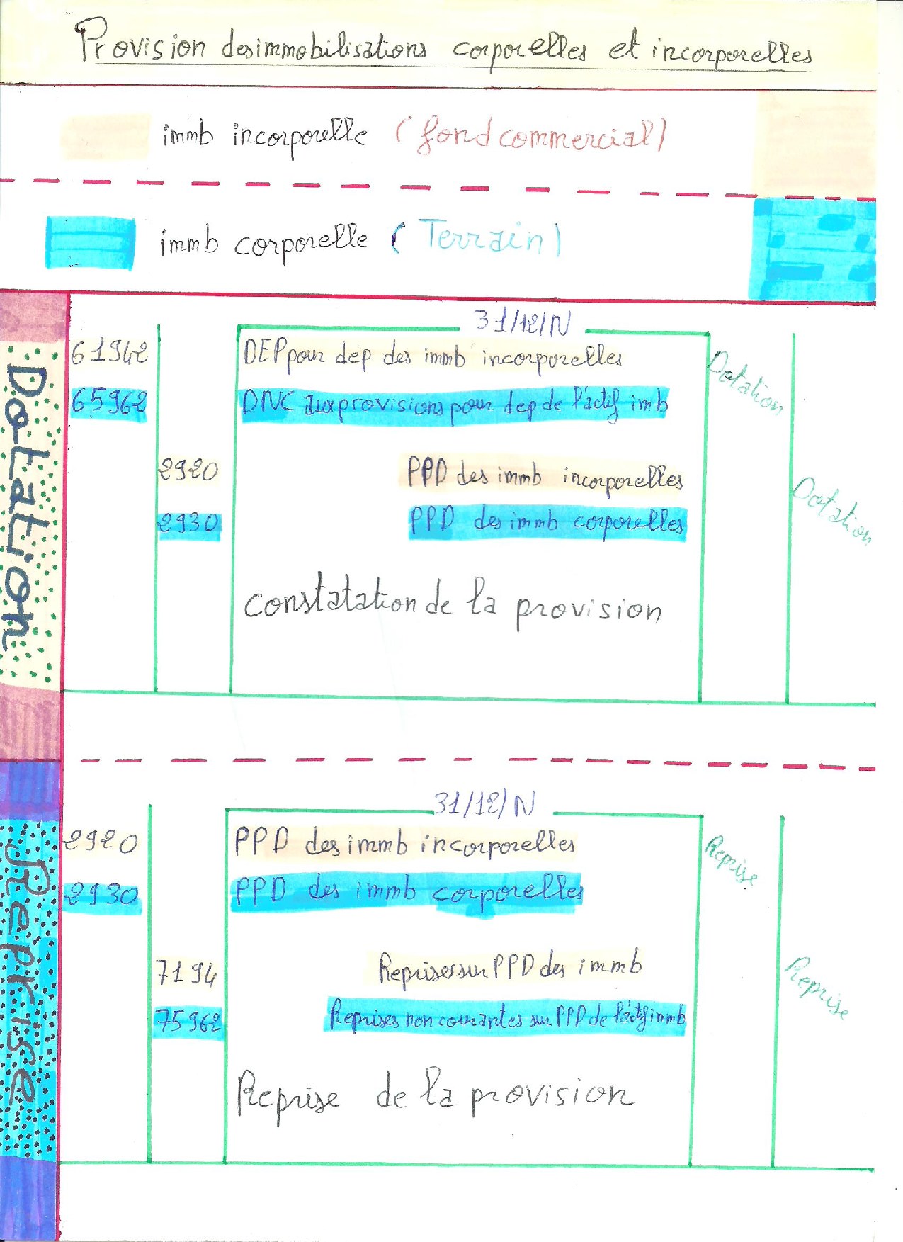 Les provisions - Les écritures (Immobilisations corporellles et incorporellles) - Résumé