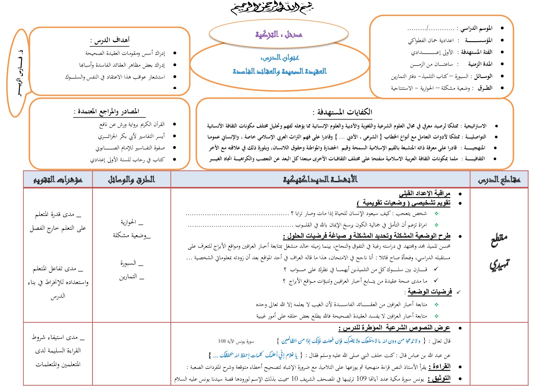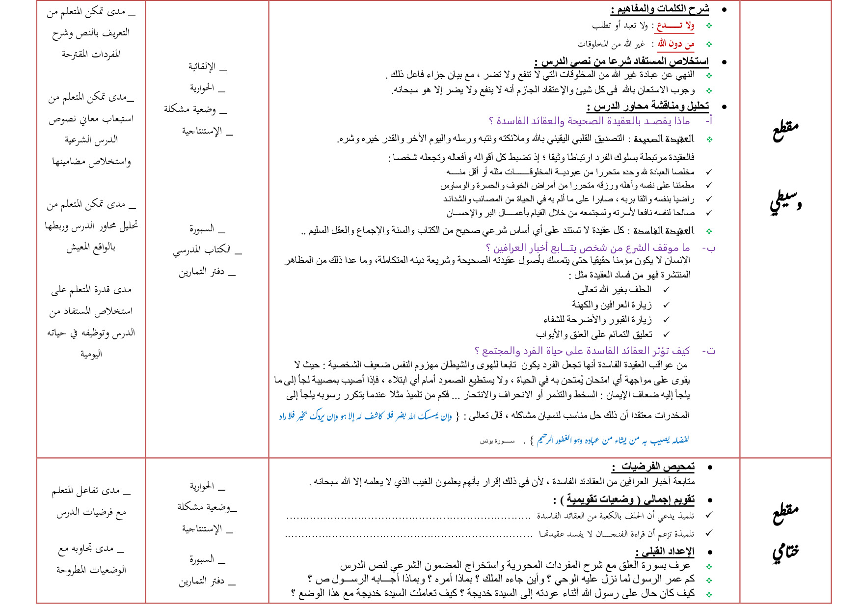 جذاذة درس العقيدة الصحيحة والعقائد الفاسدة