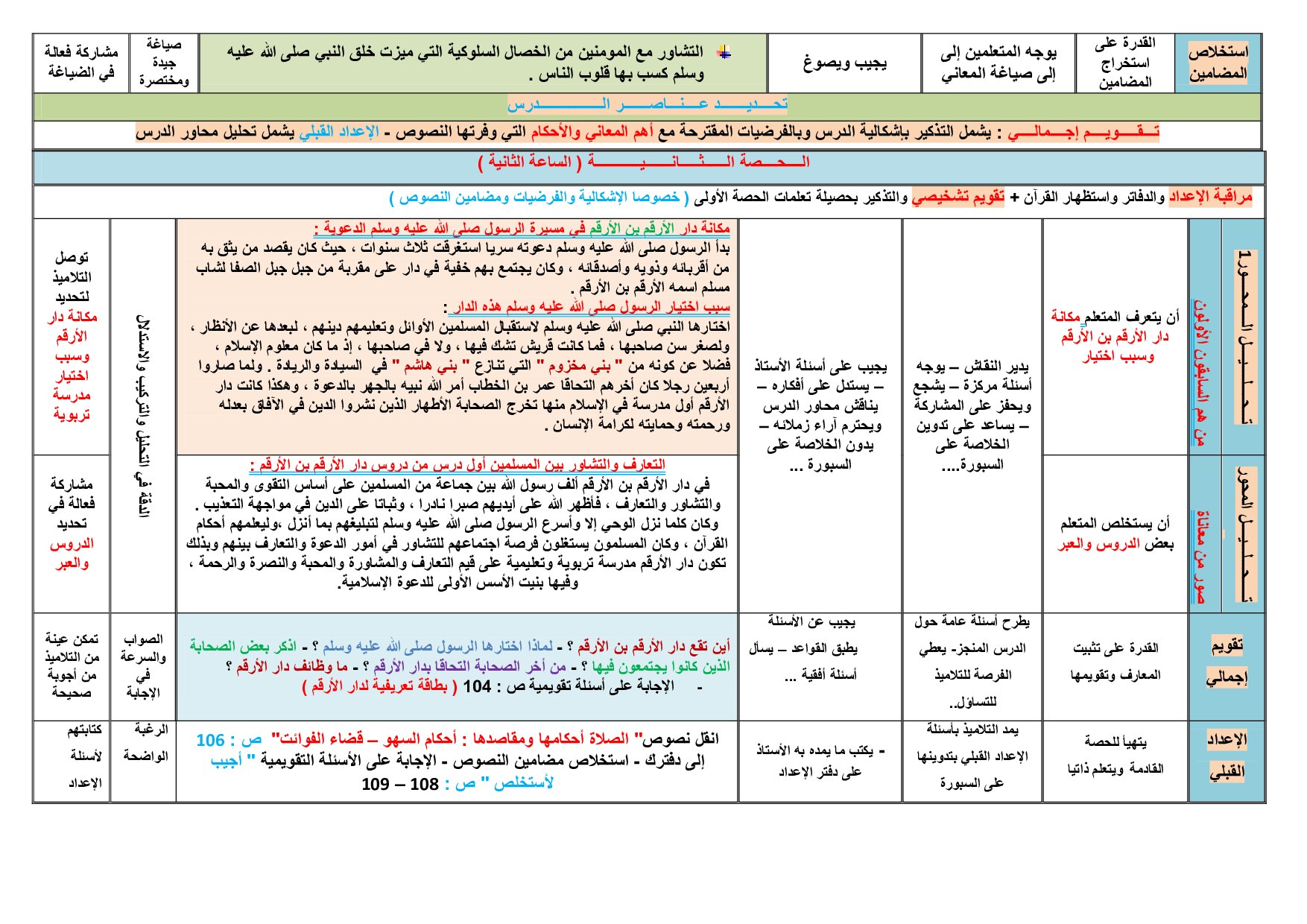جذاذة درس دار الأرقم (التعارف والتشاور)