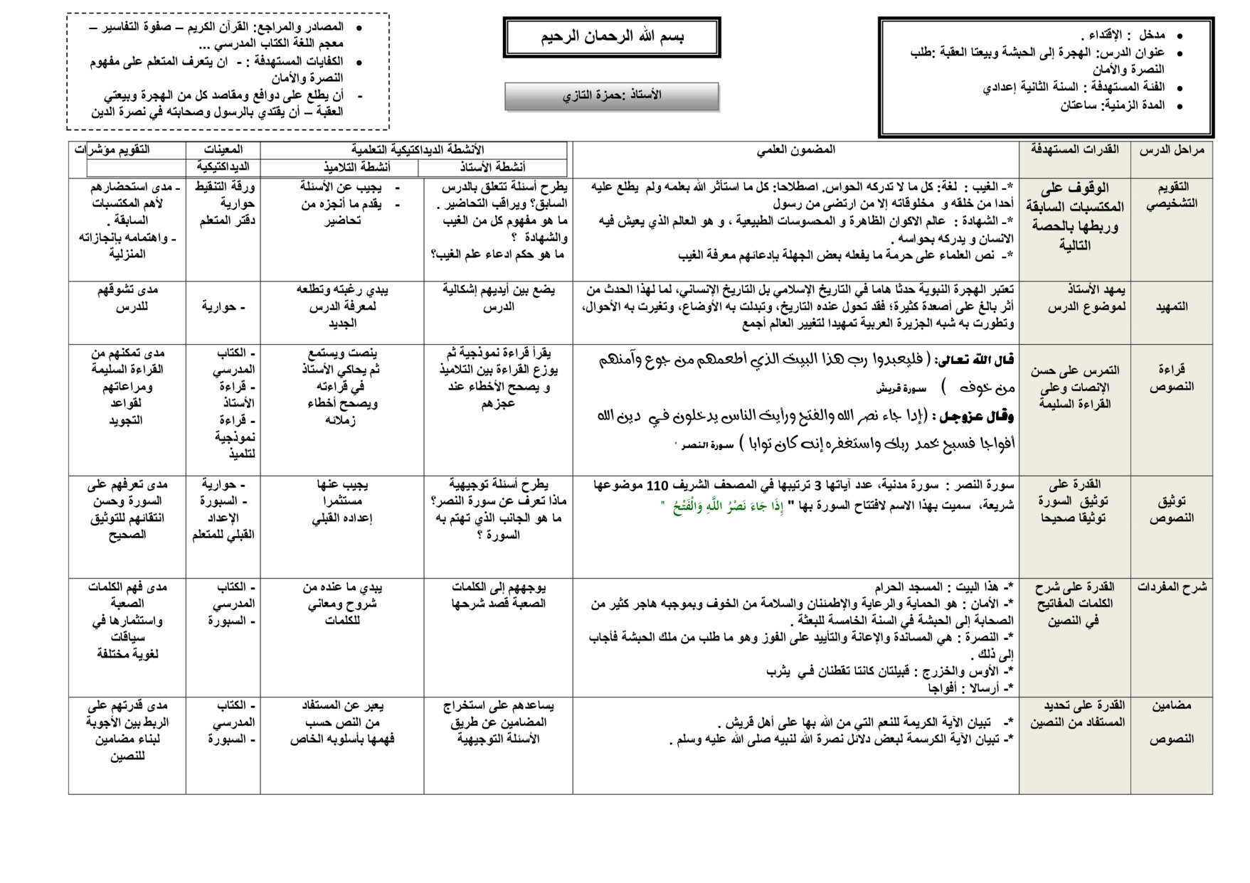 جذاذة درس الهجرة إلى الحبشة وبيعتا العقبة