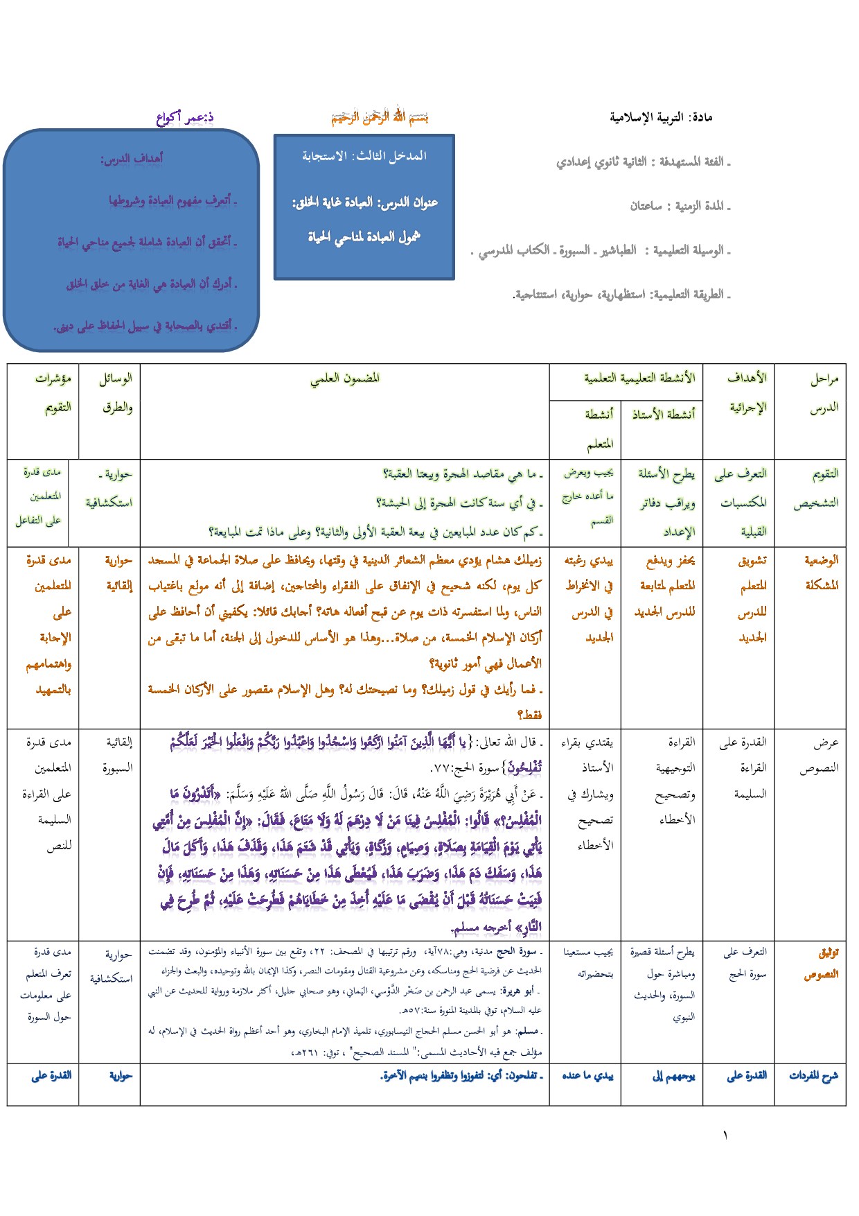 التربية الإسلامية: الثانية إعدادي