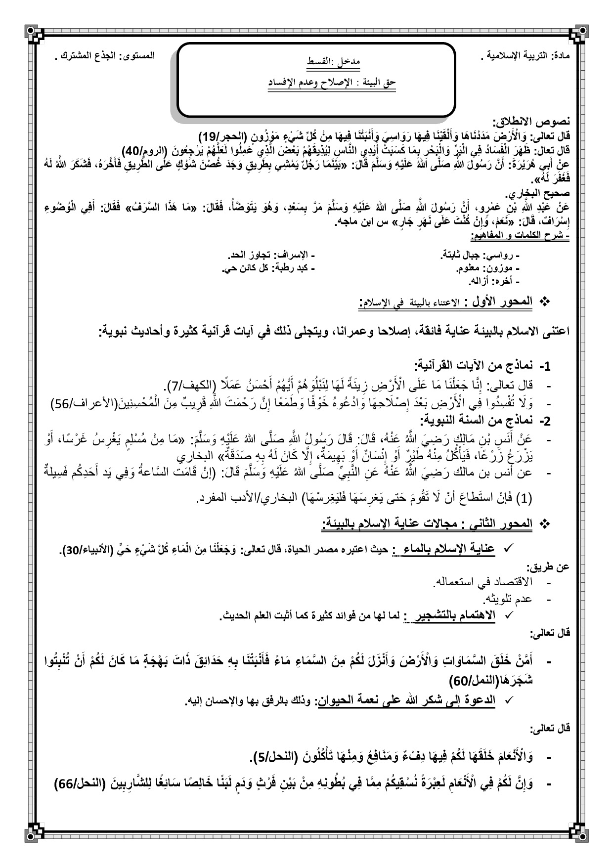 التربية الإسلامية: الجذع مشترك آداب وعلوم إنسانية