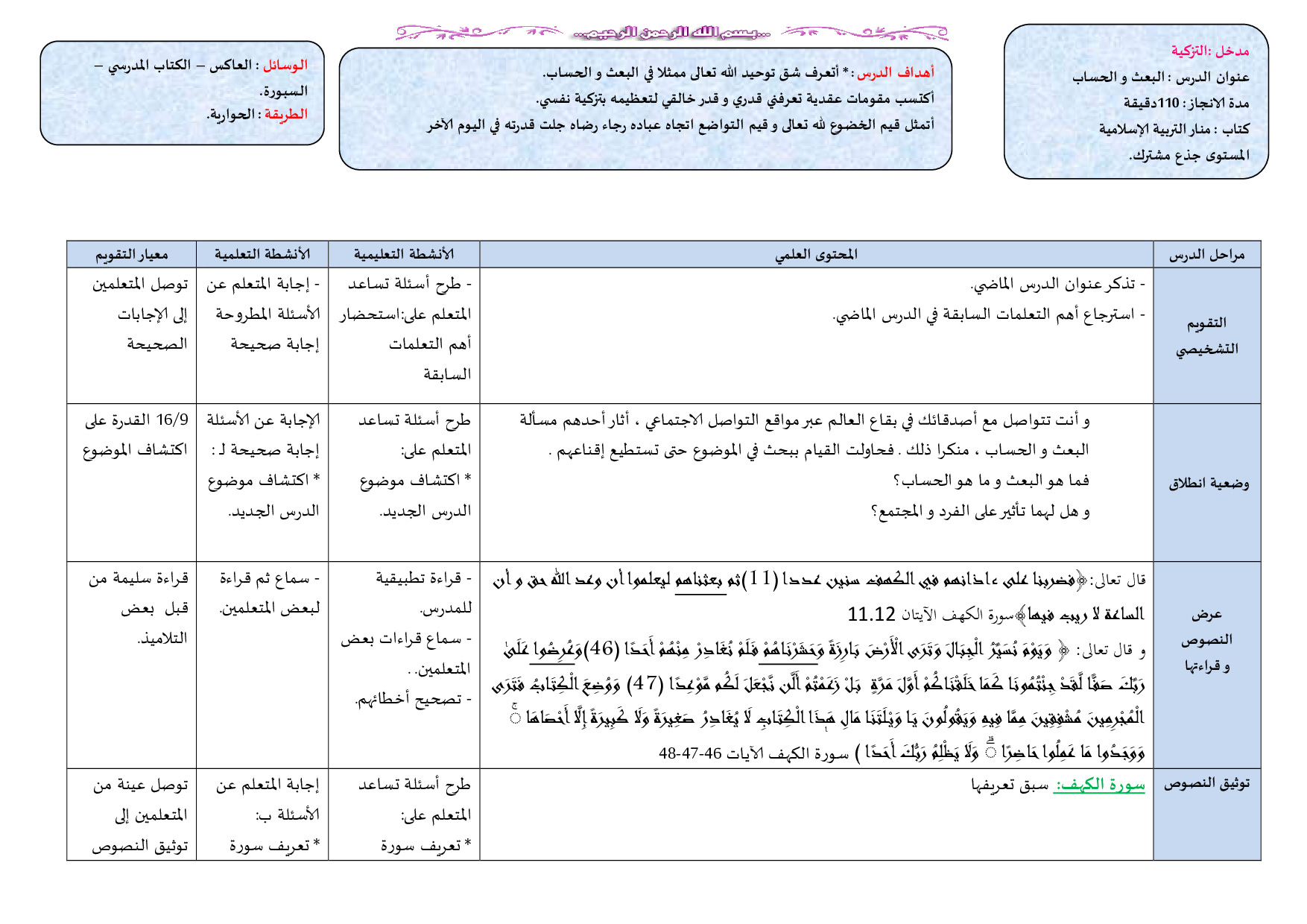 جذاذة درس البعث والحساب