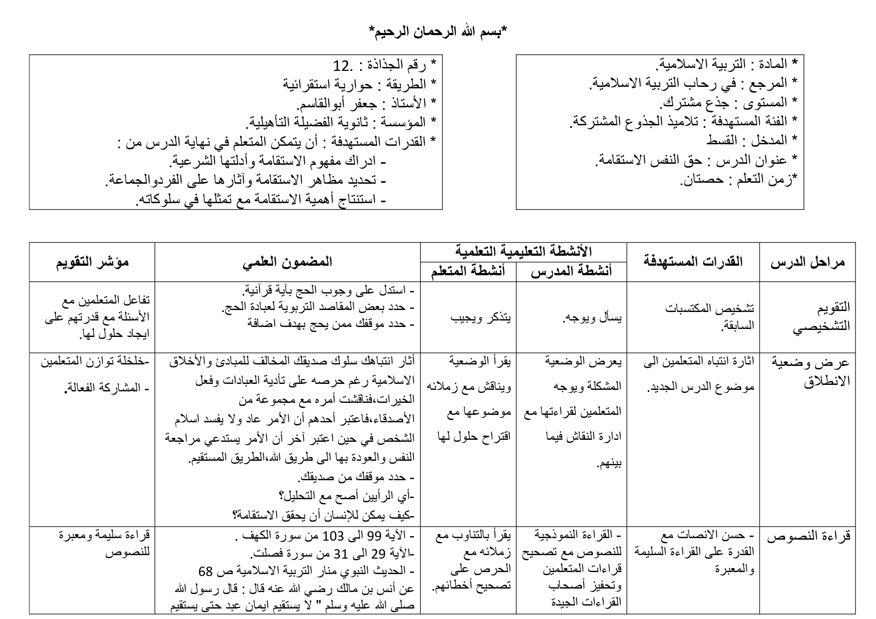 جذاذة درس حق النفس – الاستقامة