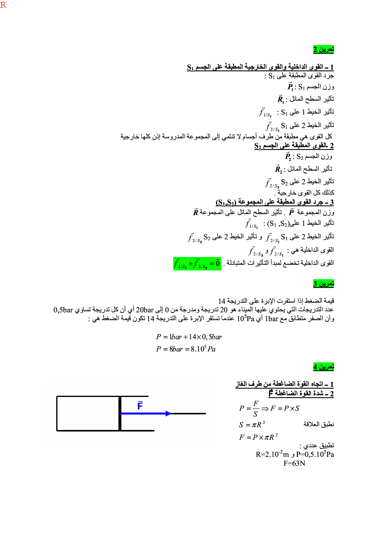 أمثلة لتأثيرات ميكانيكية - تصحيح سلسلة التمارين 1