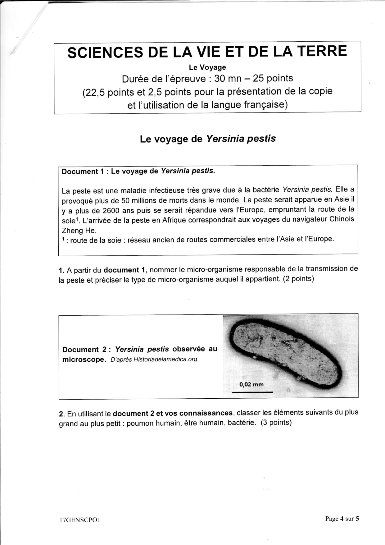 Brevet Physique et SVT Polynésie 2017 - Sujet