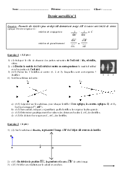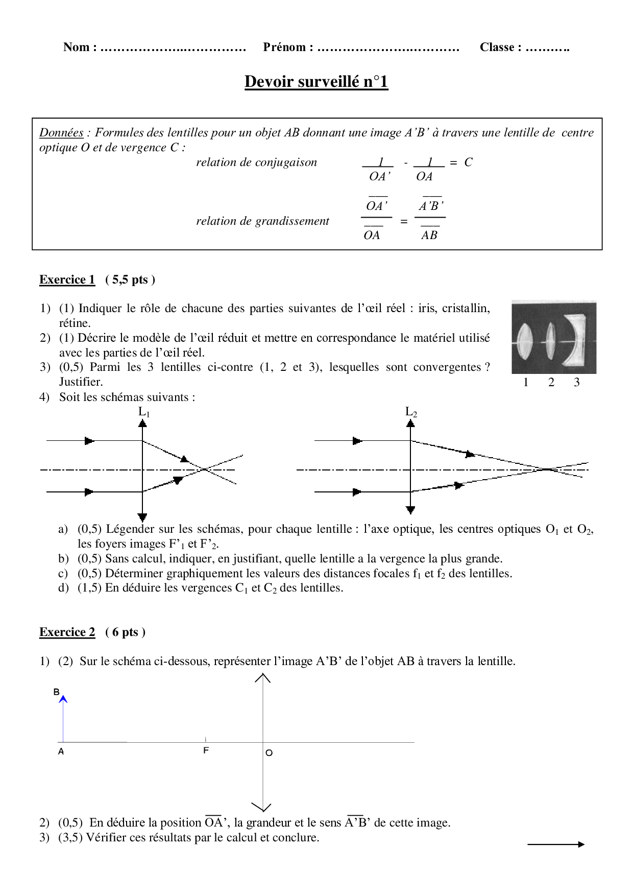 Exercices non corrigés (Œil réduit, reconnaitre une lentille convergente, relation de conjugaison)