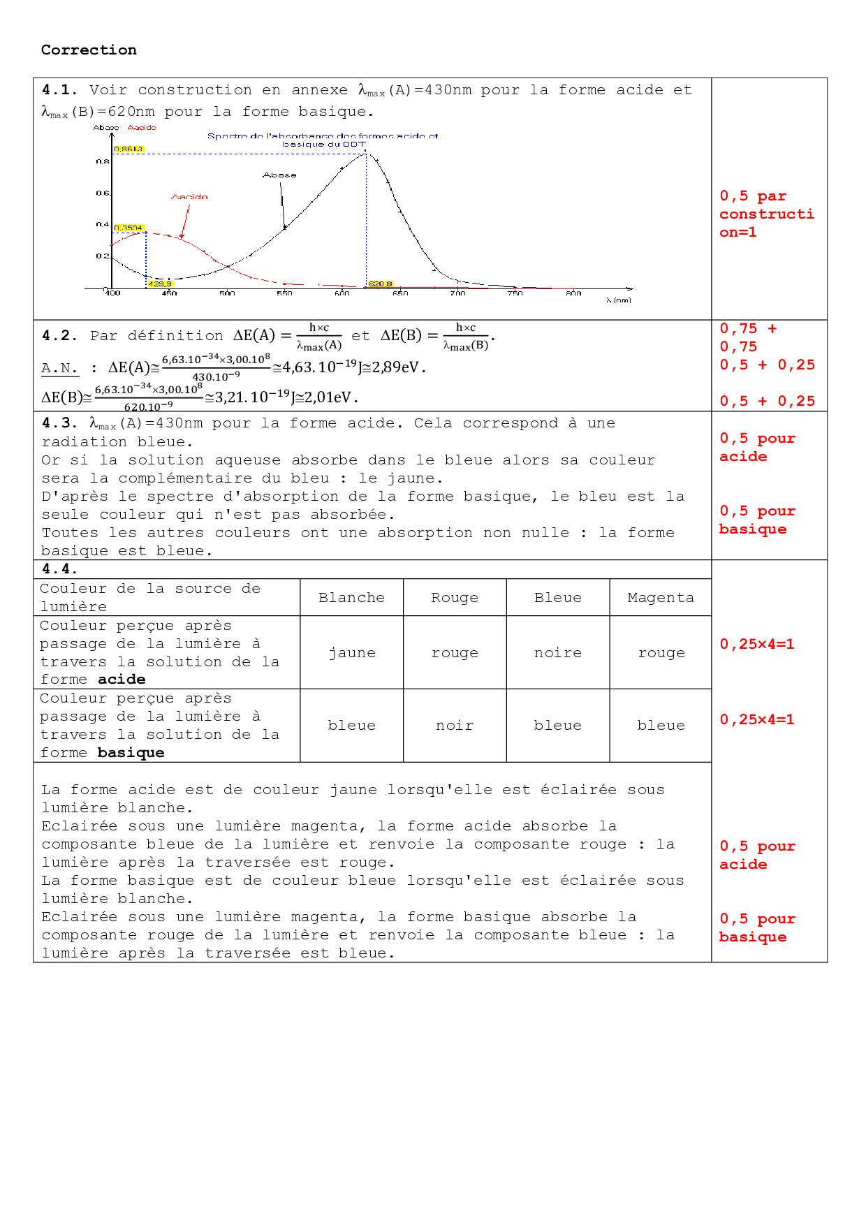Exercices corrigés (Courbe d’absorbance du BBT sous forme acide et basique)