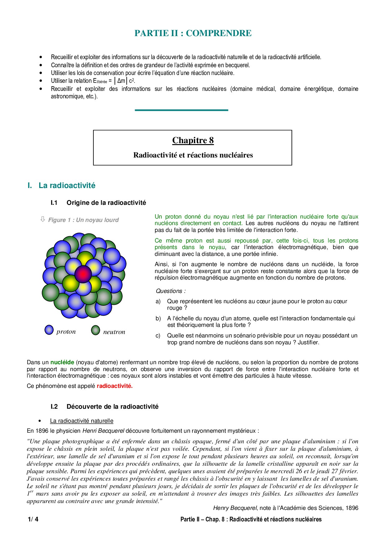 Radioactivité et réactions nucléaires - Cours