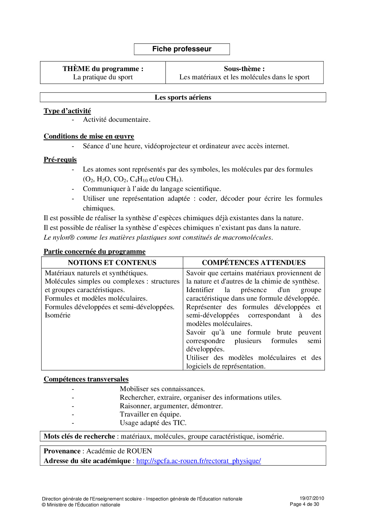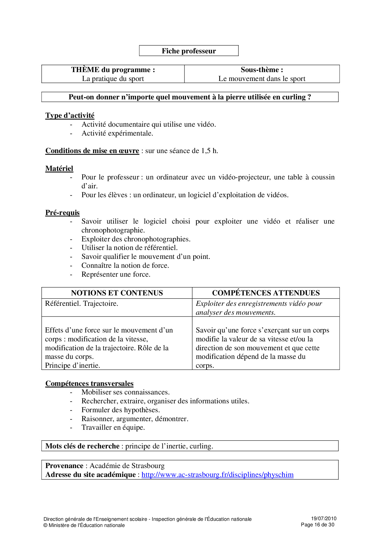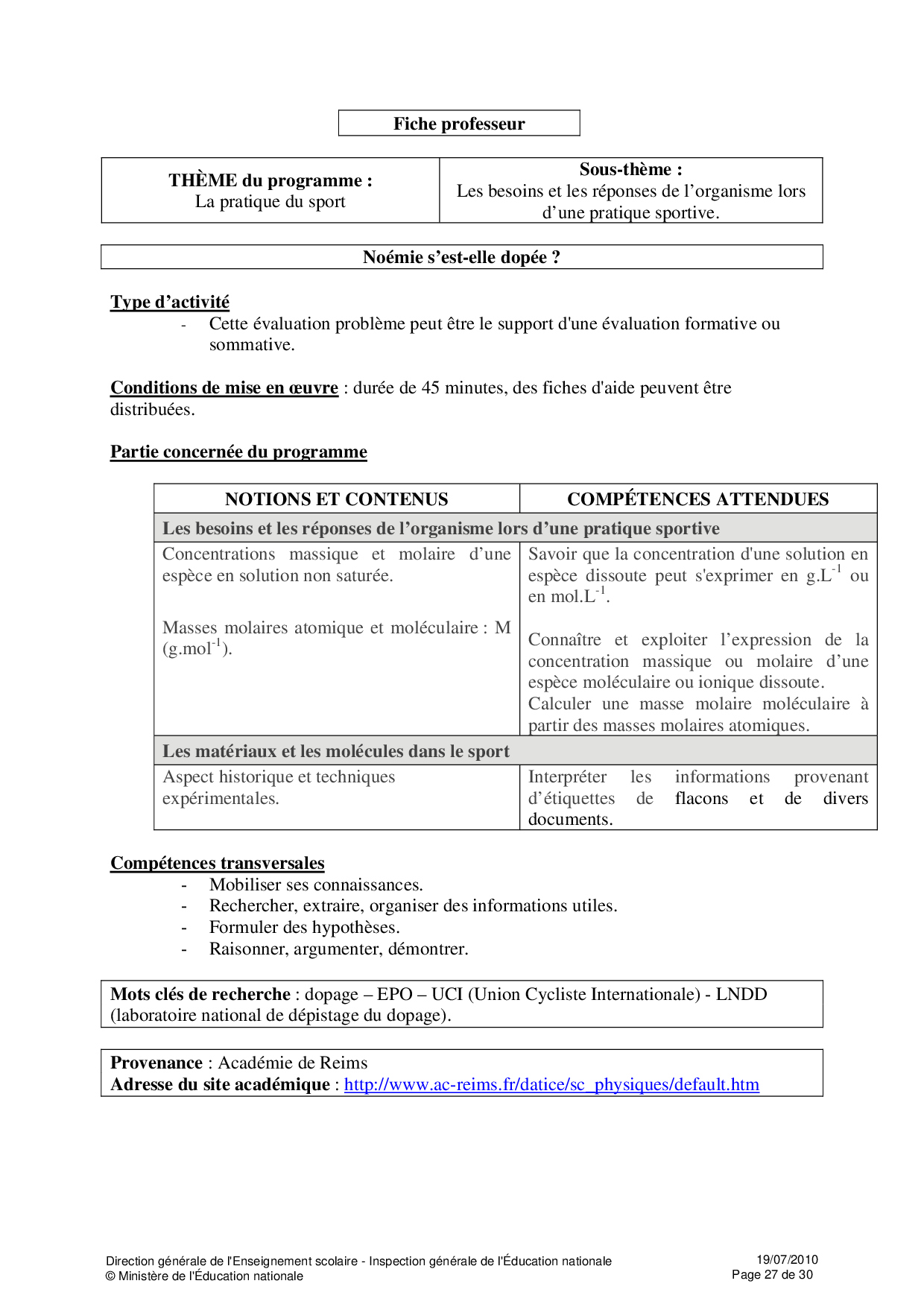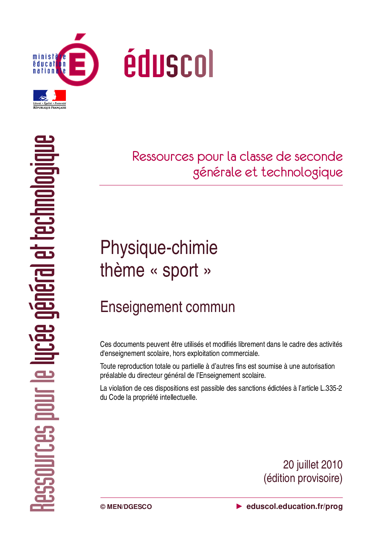 Ressources Educsol - Physique et Chimie Seconde thème «Sport»