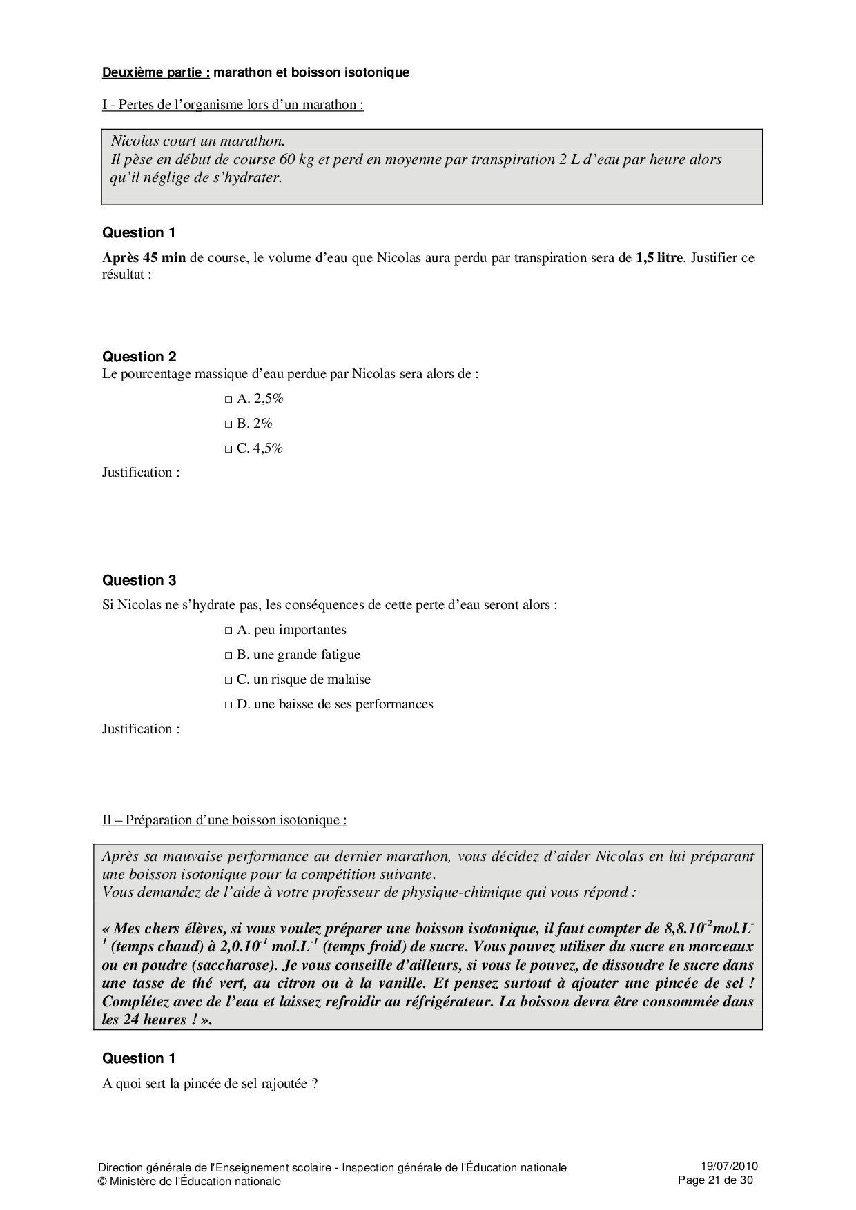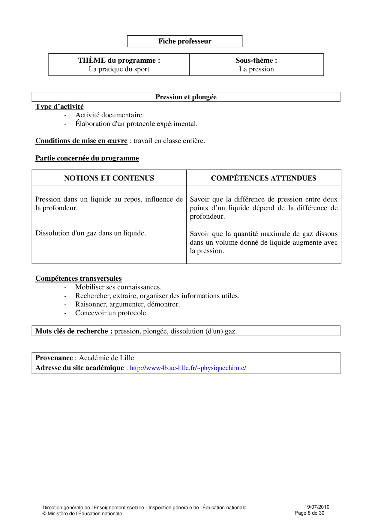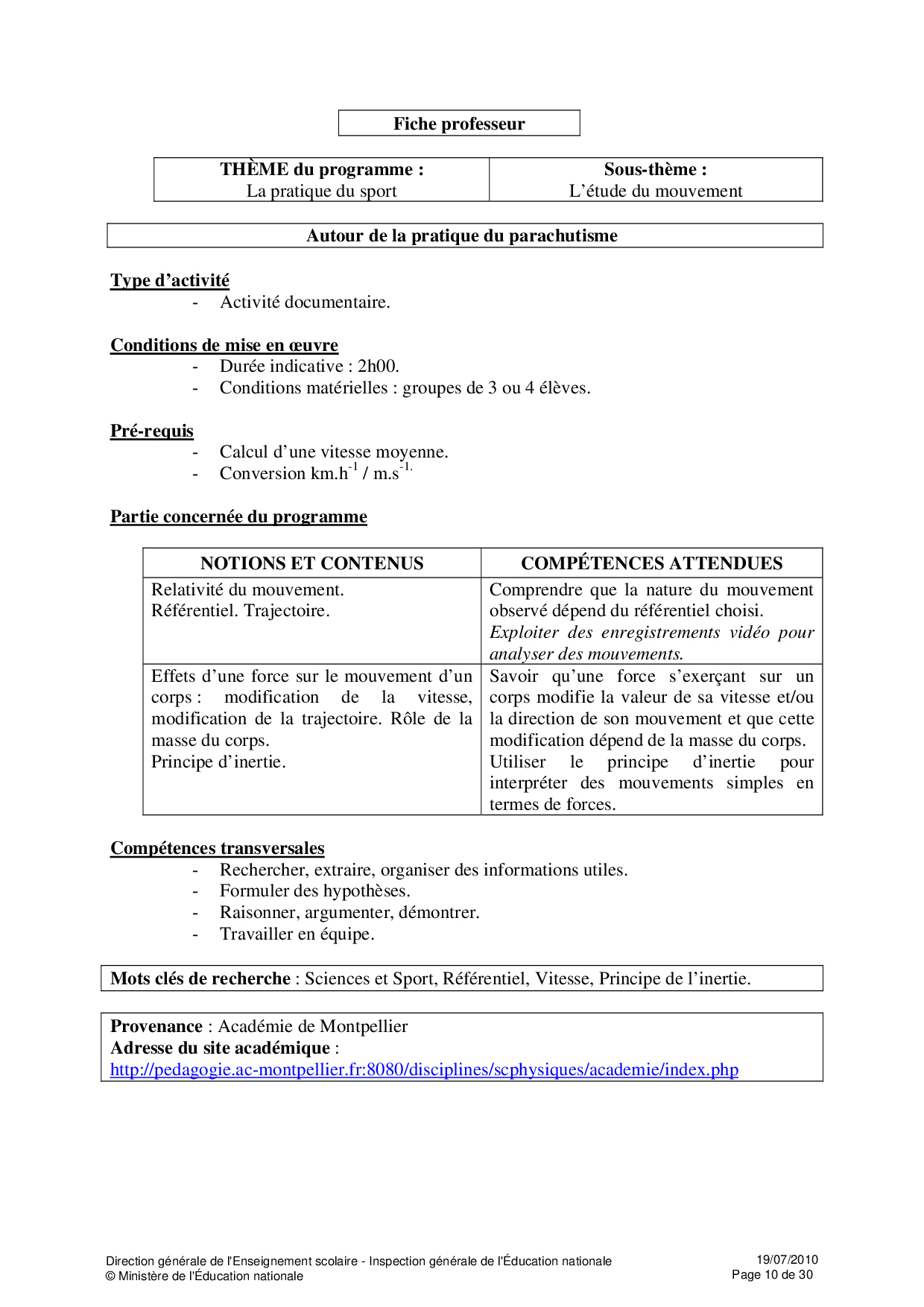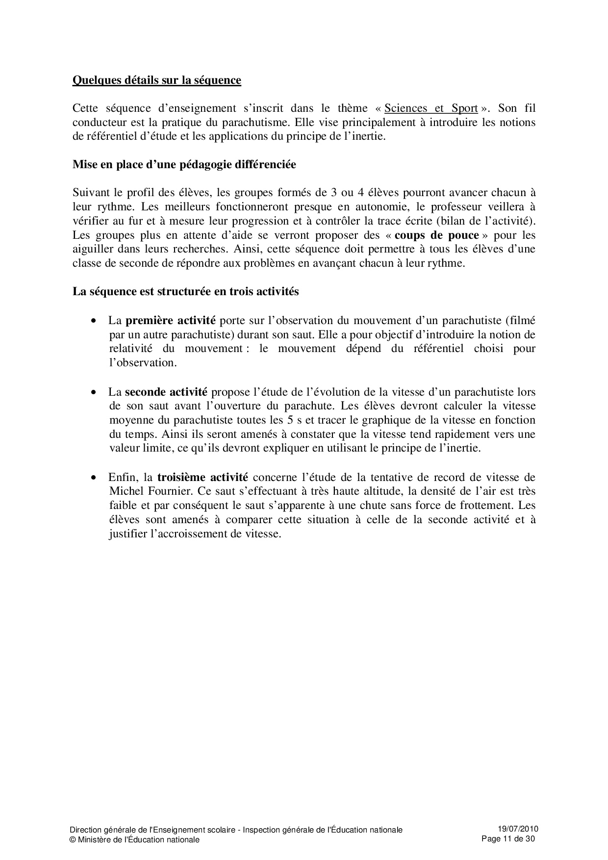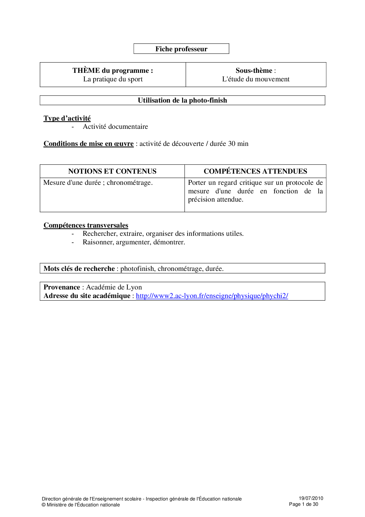 Ressources Educsol - Physique et Chimie Seconde thème «Sport»