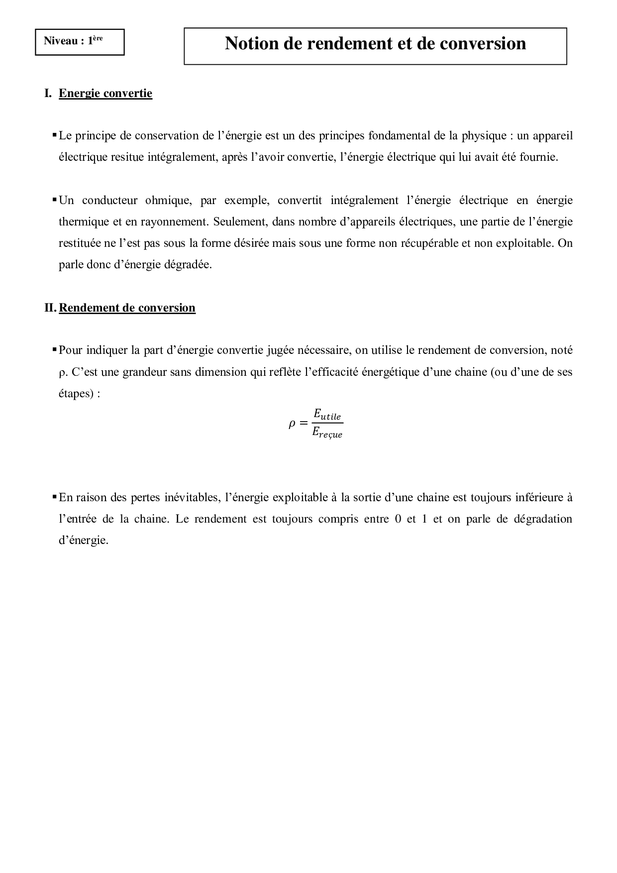 Notion de rendement et de conversion – Cours