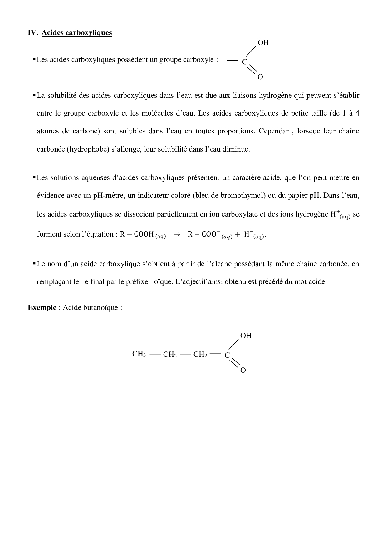 Alcools, composés carbonylés et acides carboxyliques – Cours