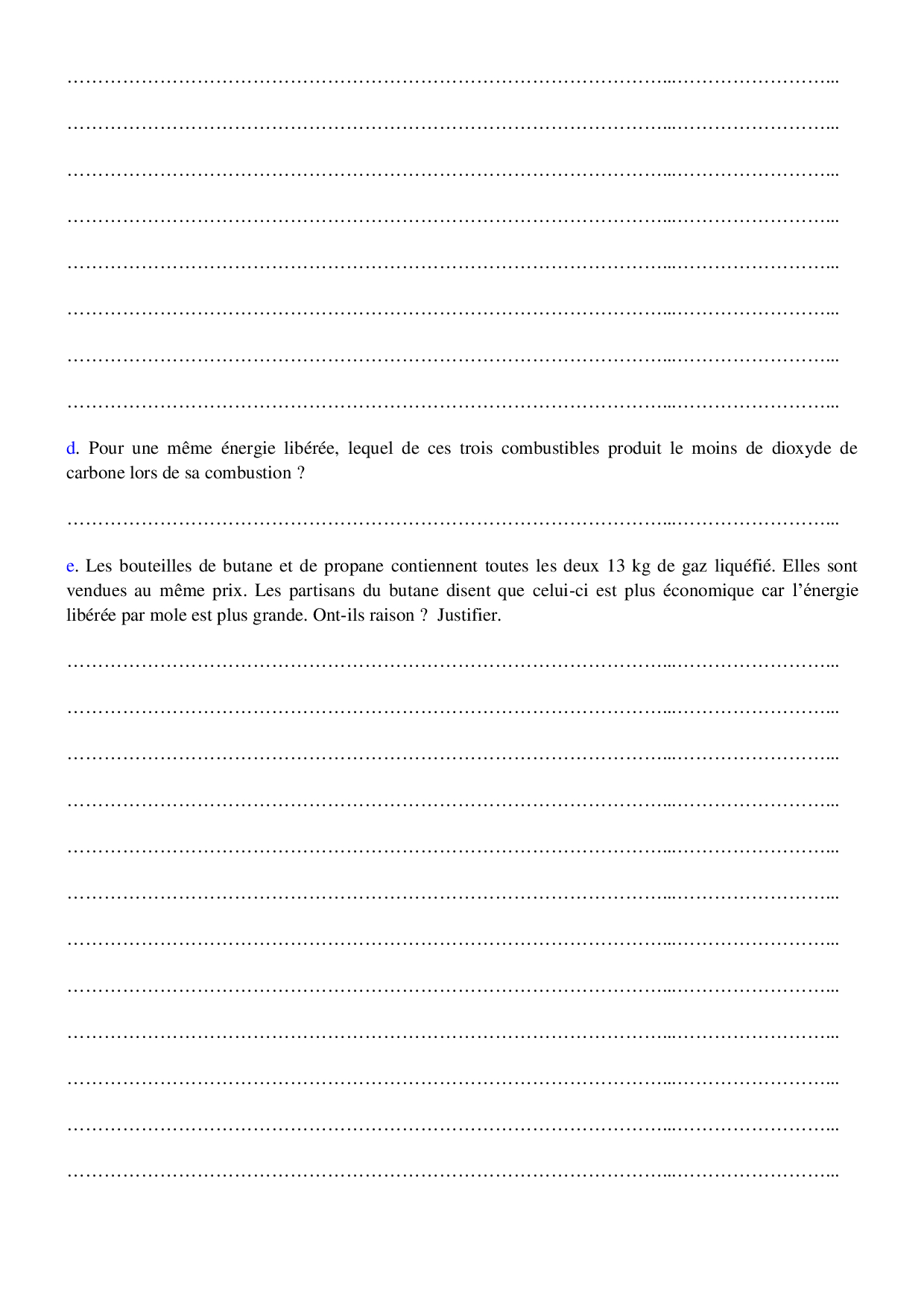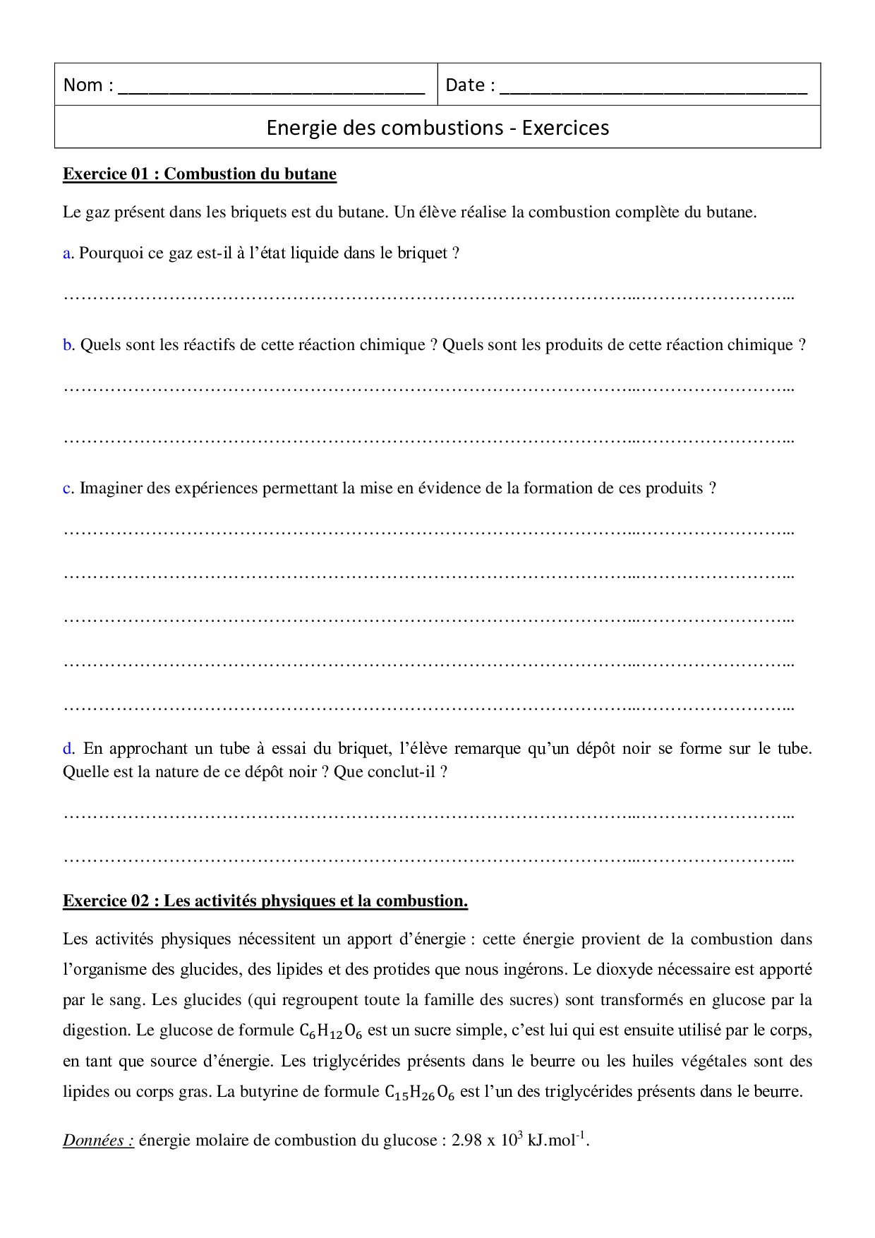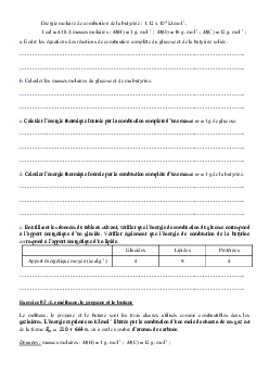Energie des combustions – Exercices