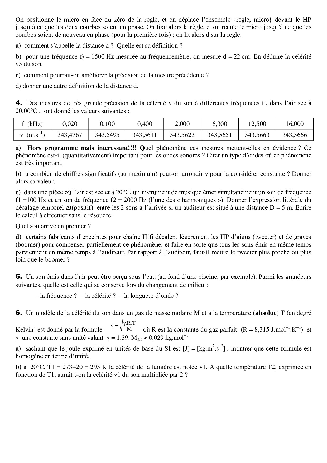 Célérité du son - Sujet