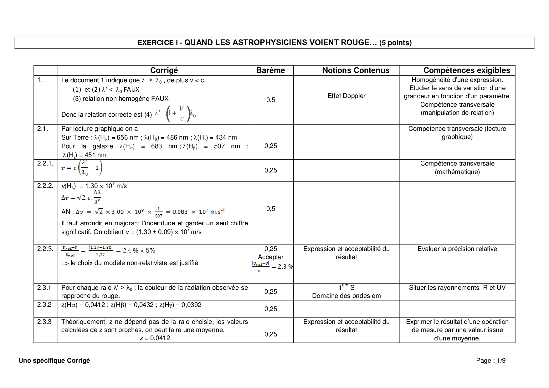 Thème 1 : Observer - Ondes et matière (Annales corrigés)