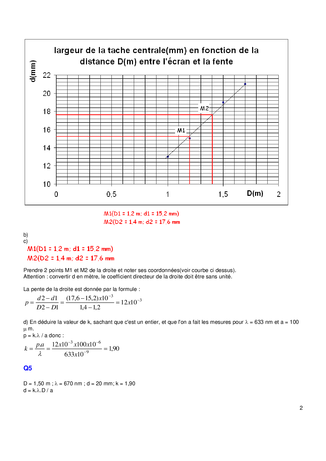 Mesure du diamètre d’un cheveu - Corrigé
