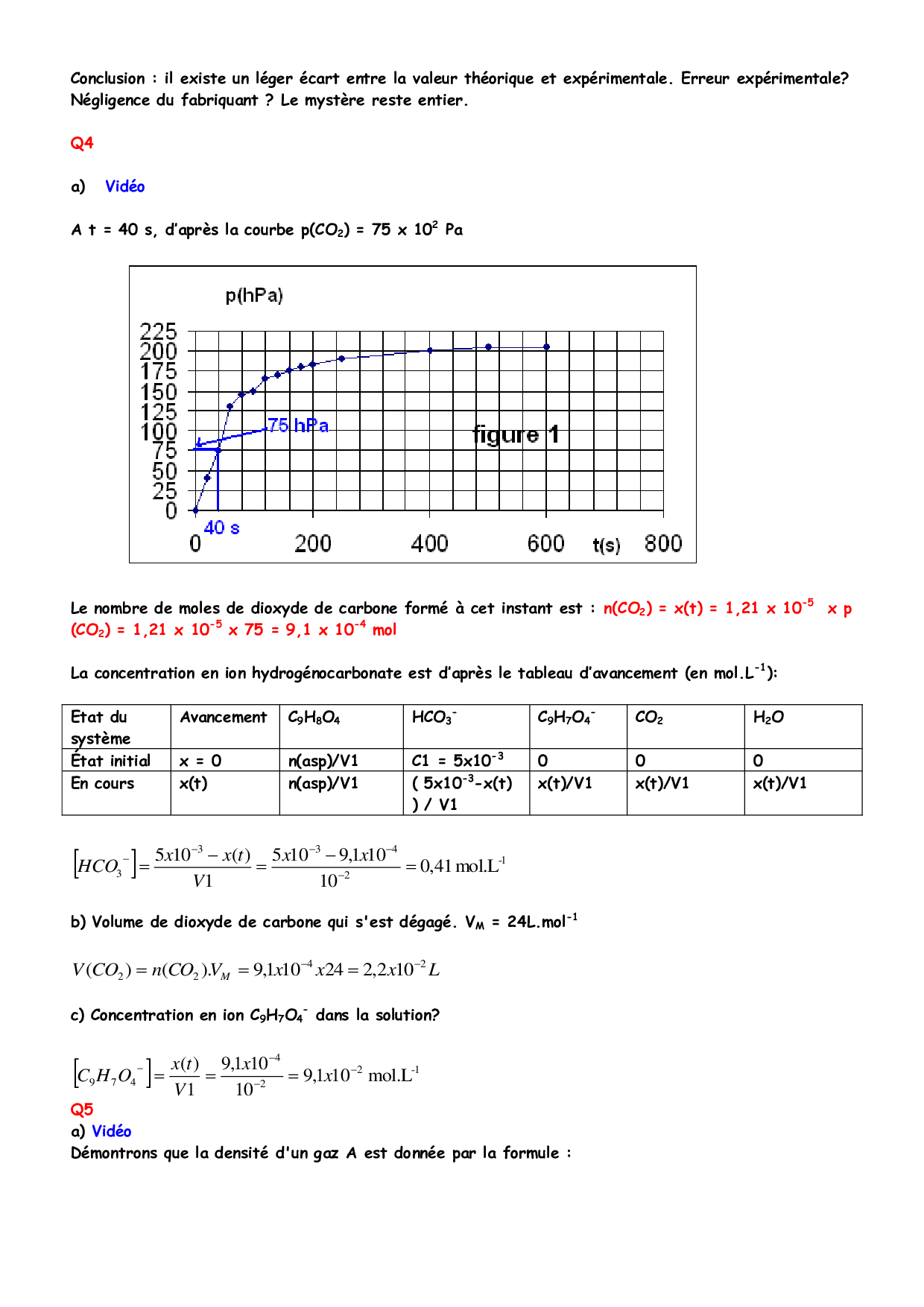 Réaction dans un verre d’eau - Corrigé