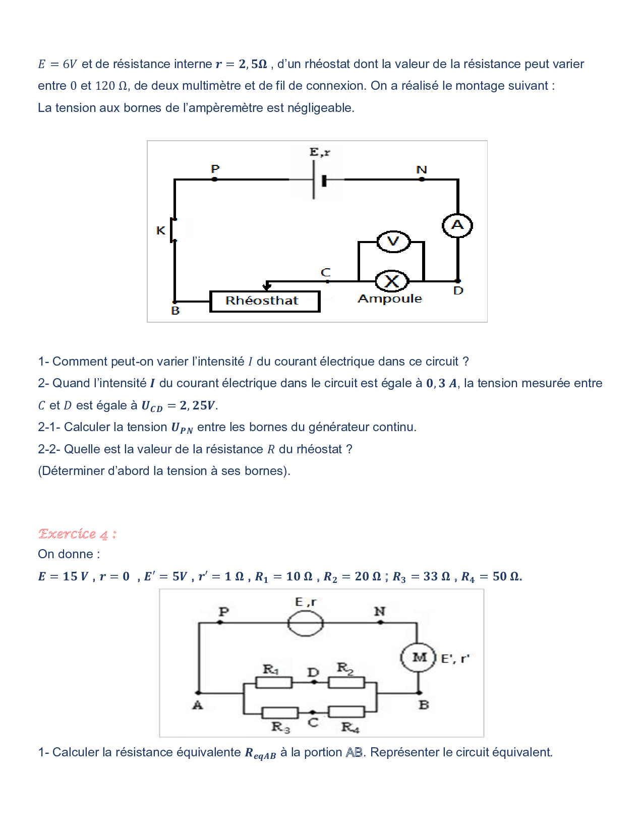 Caractéristique d'un dipôle actif - Série d'exercices 1