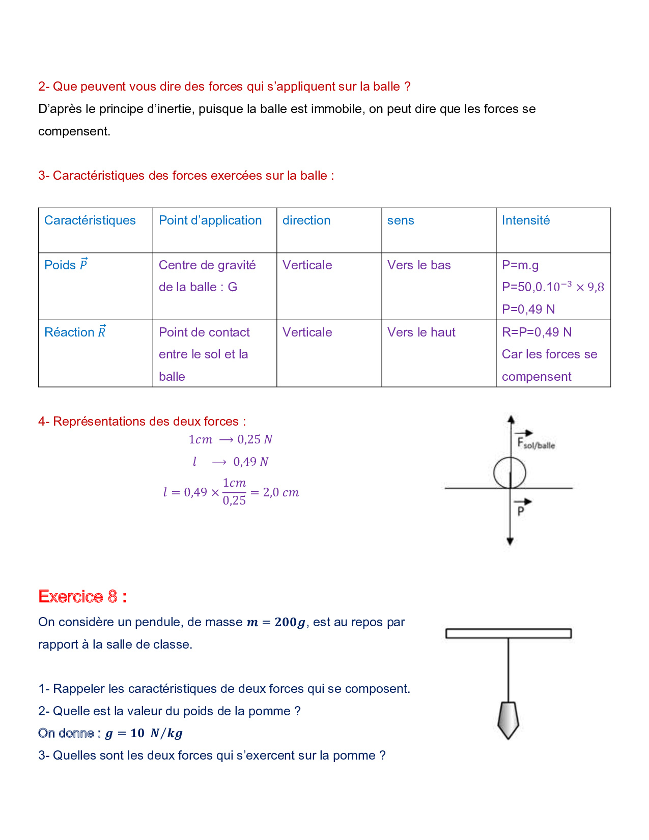 Exemples d’actions mécaniques - Exercices corrigés 1