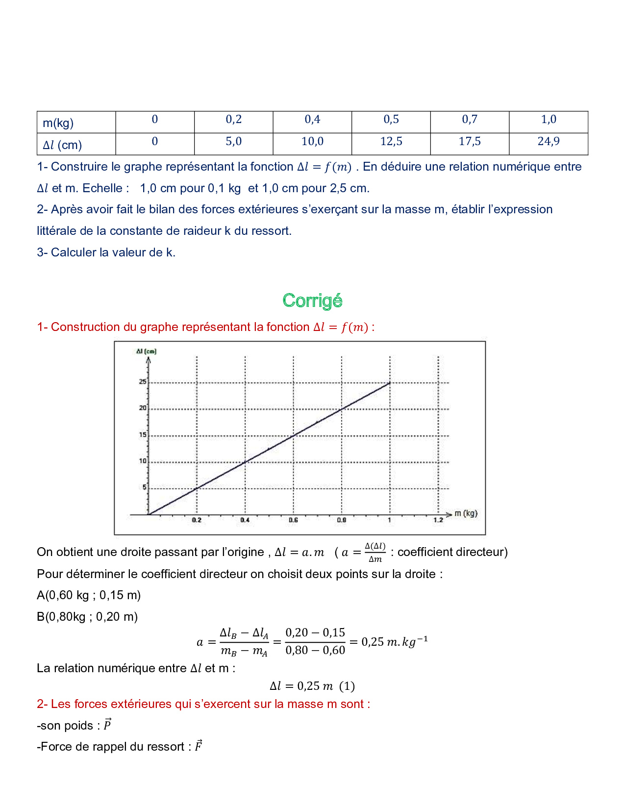 Équilibre d'un corps sous l'action de 2 forces - Exercices corrigés 1