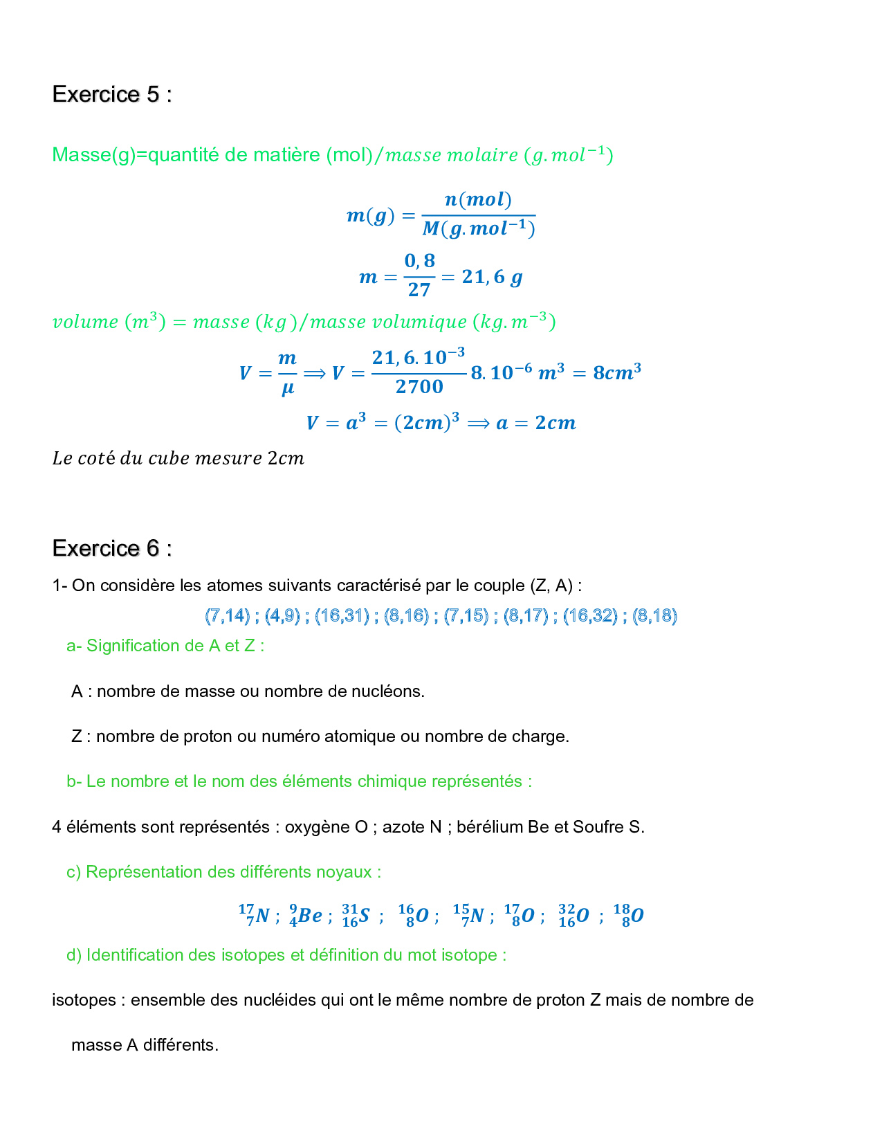 Le modèle de l'atome - Corrigé série d'exercices 1