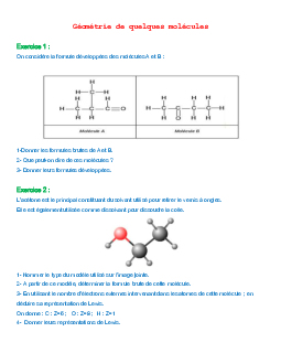 La géométrie de quelques molécules - Série d'exercices 1