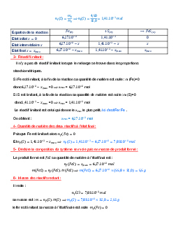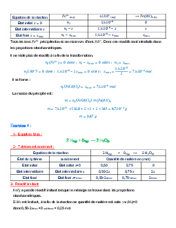Modélisation des transformations chimiques - Corrigé série d'exercices 1