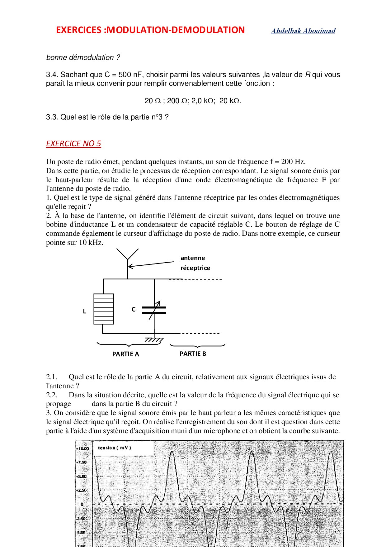 Modulation d'amplitude - Exercices non corrigés 4