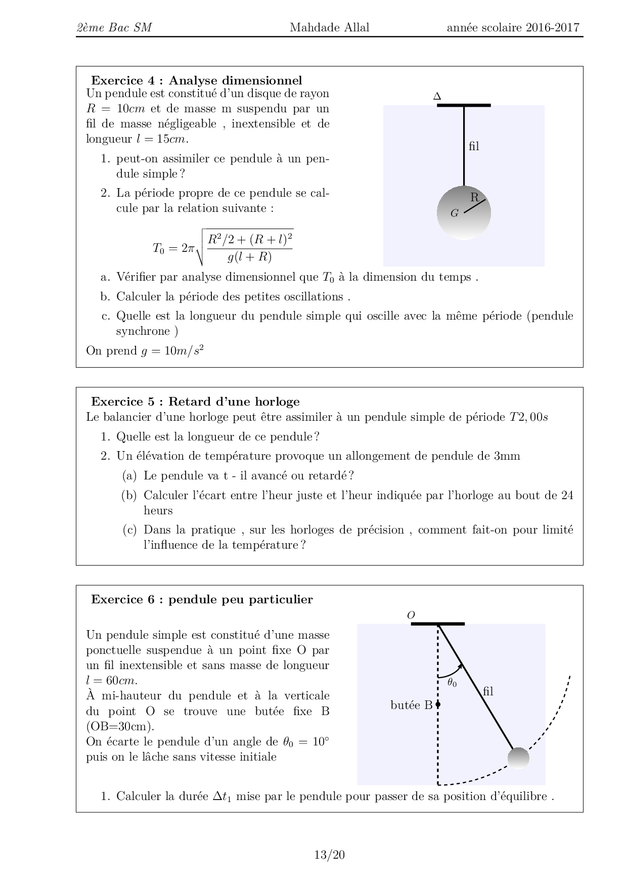 Pendule pesant - Exercices non corrigés 2