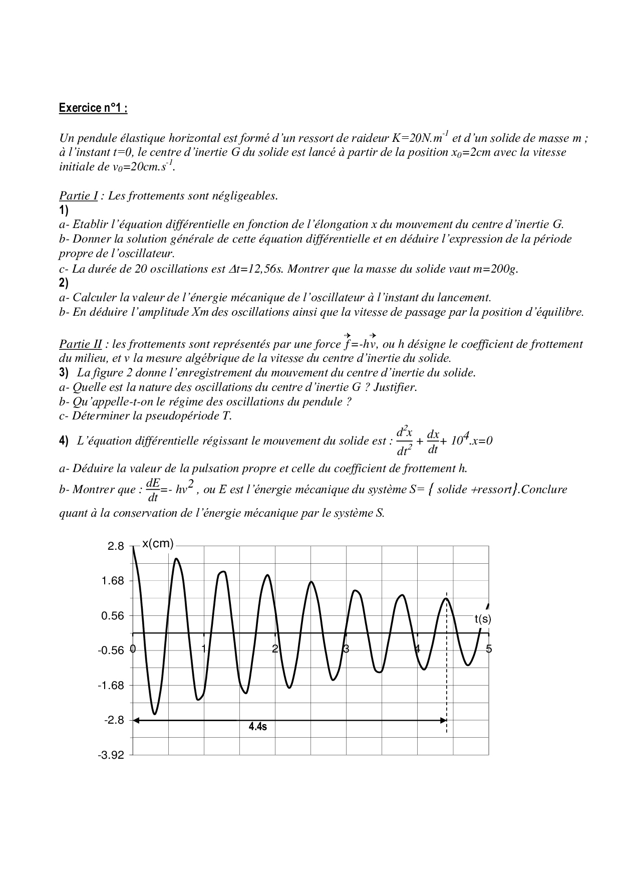 Systèmes mécaniques oscillants - Exercices non corrigés 2