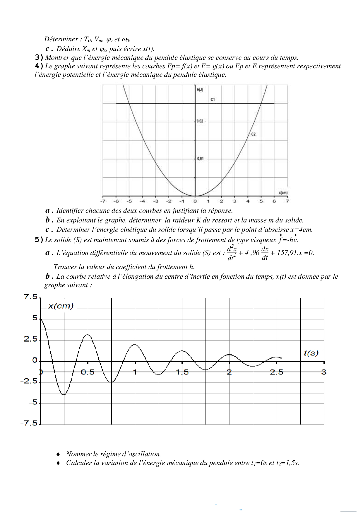 Systèmes mécaniques oscillants - Exercices non corrigés 2
