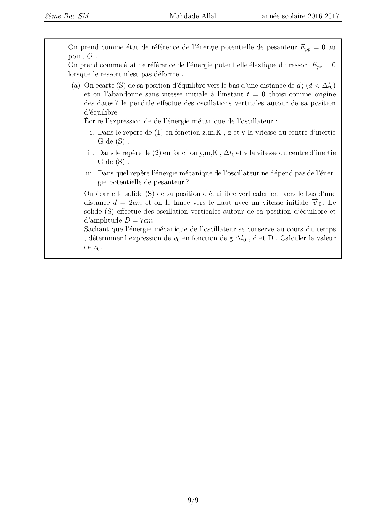 Aspects énergétiques des oscillations mécaniques - Exercices non corrigés 1