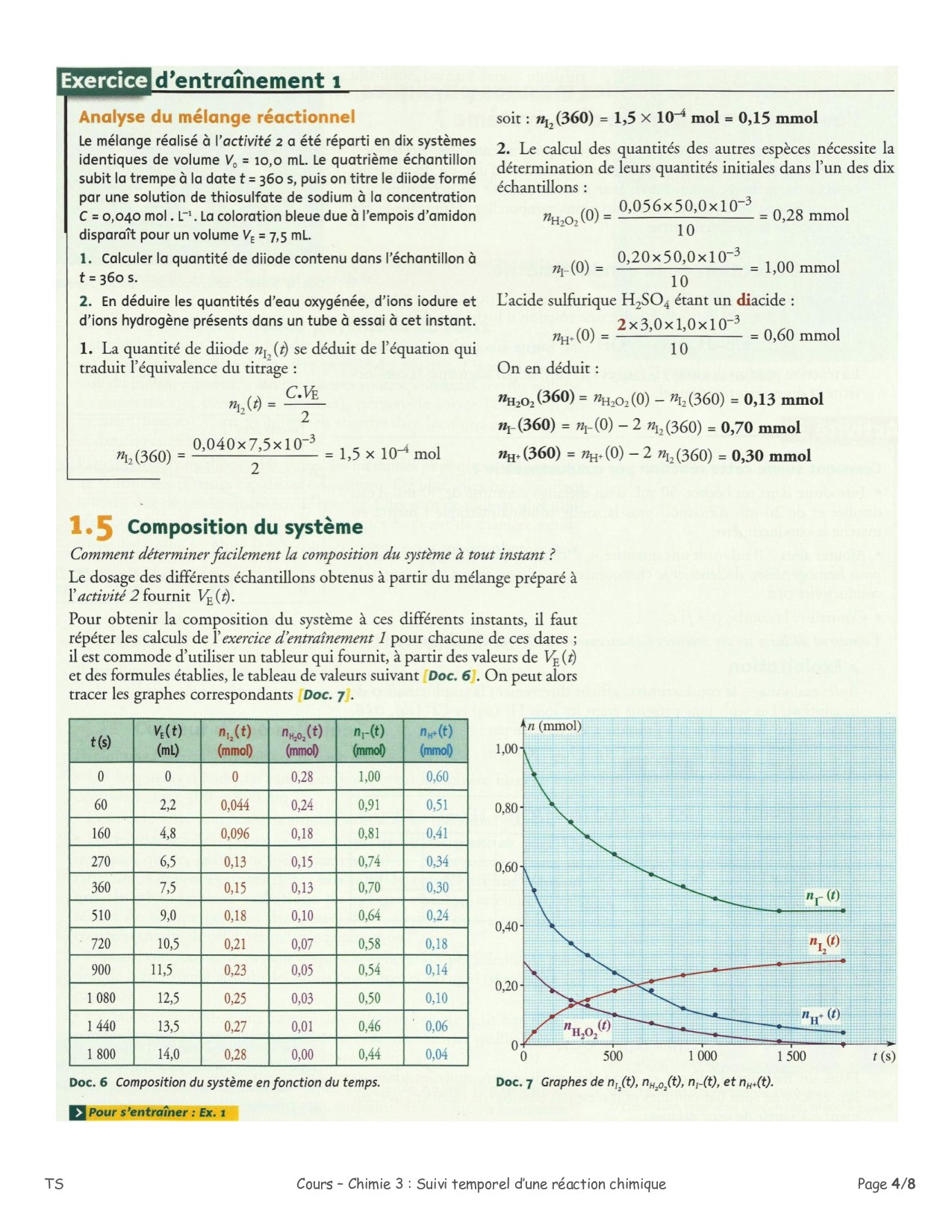 Suivi temporel d'une transformation chimique - Vitesse de réaction - Cours 3