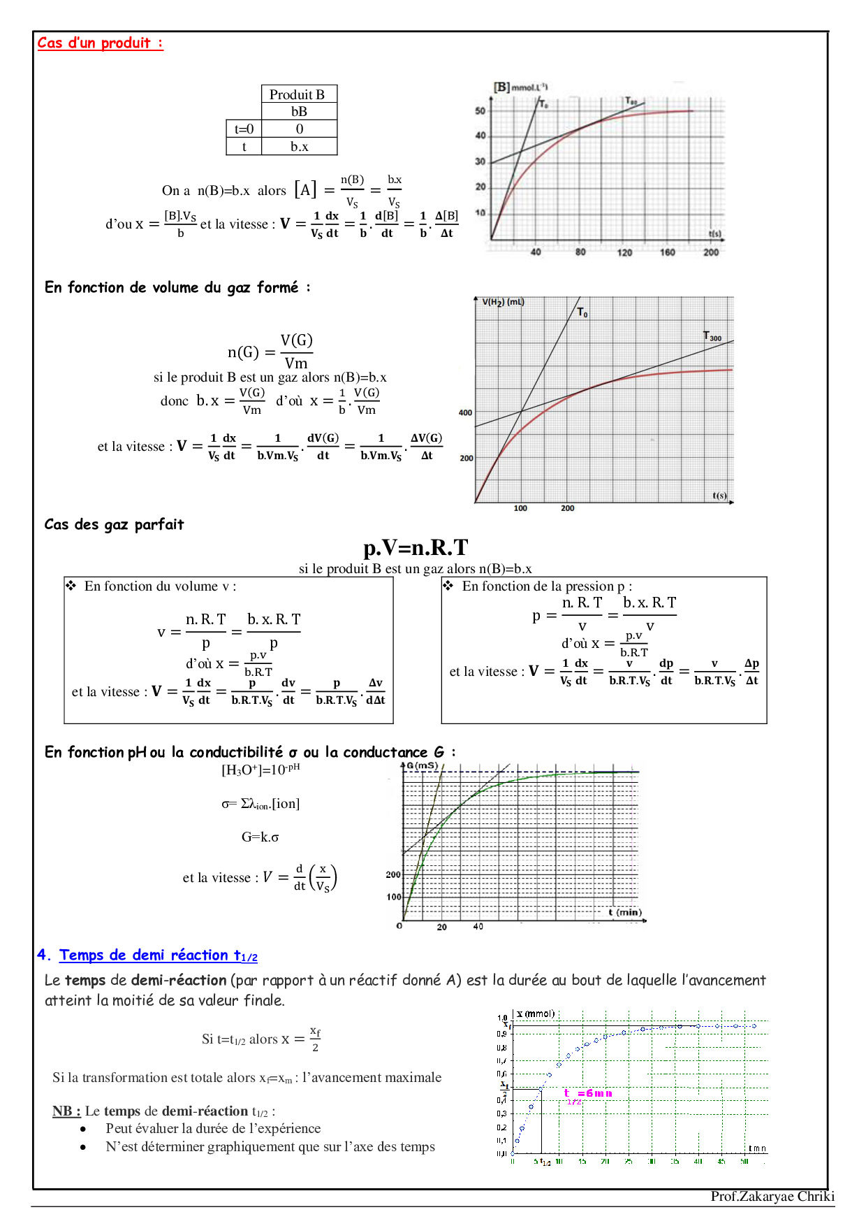 Suivi temporel d'une transformation chimique - Vitesse de réaction - Résumé de cours 1