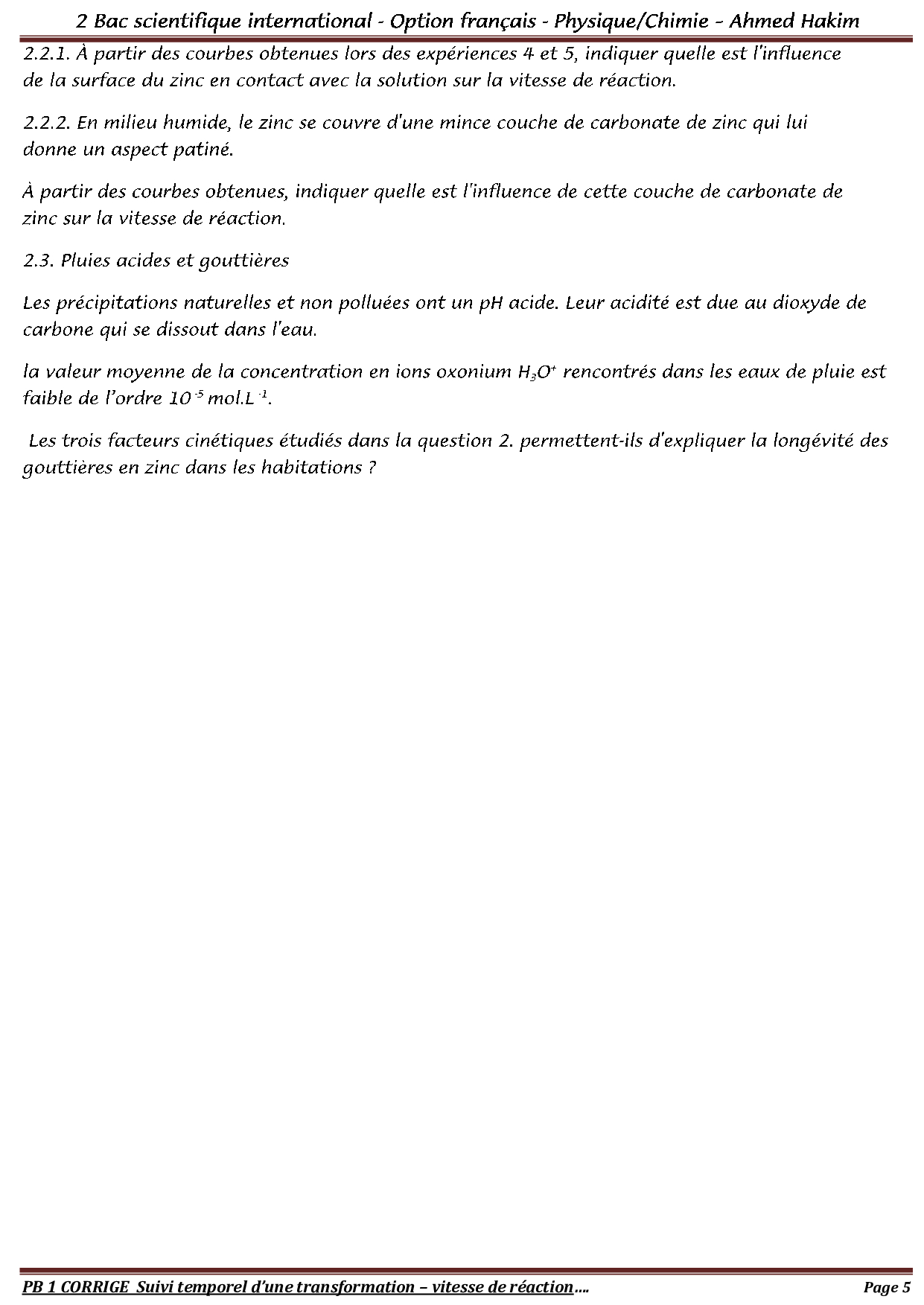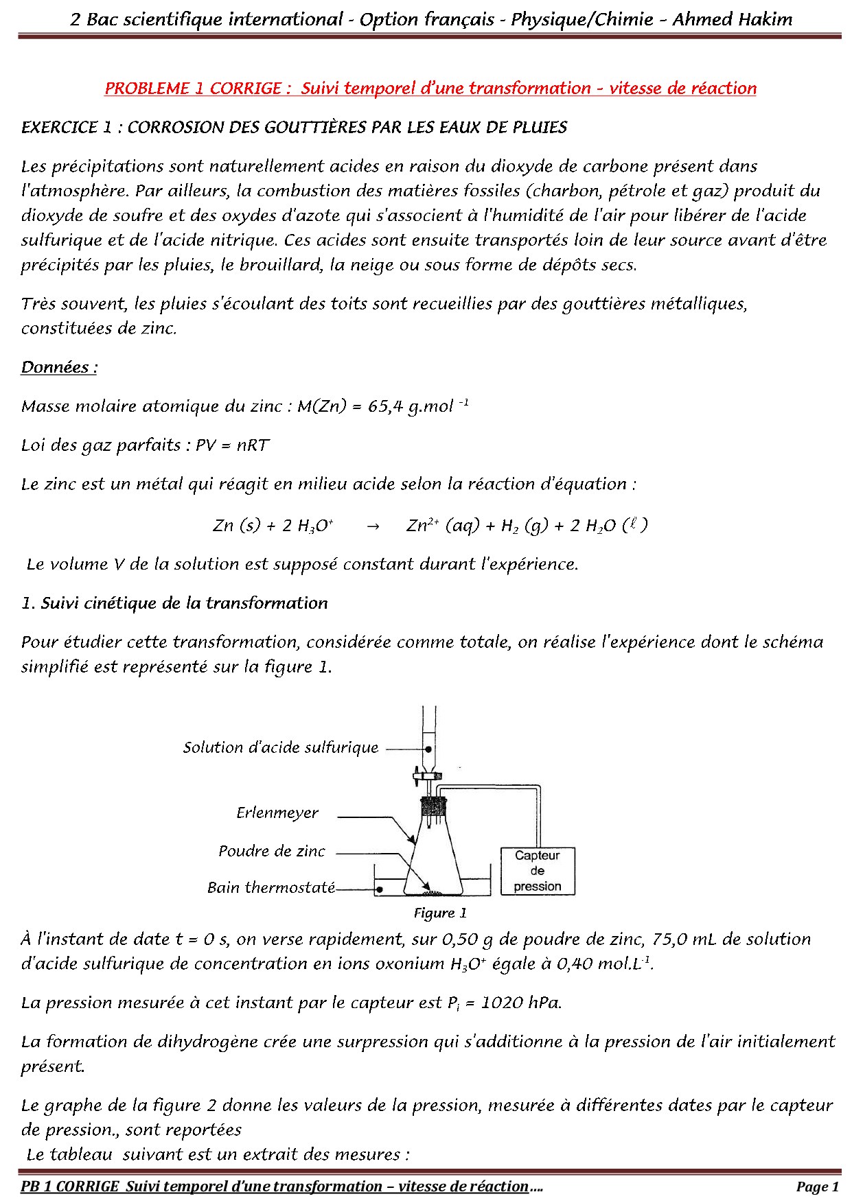 Suivi temporel d'une transformation chimique - Vitesse de réaction - Série d'exercices 2