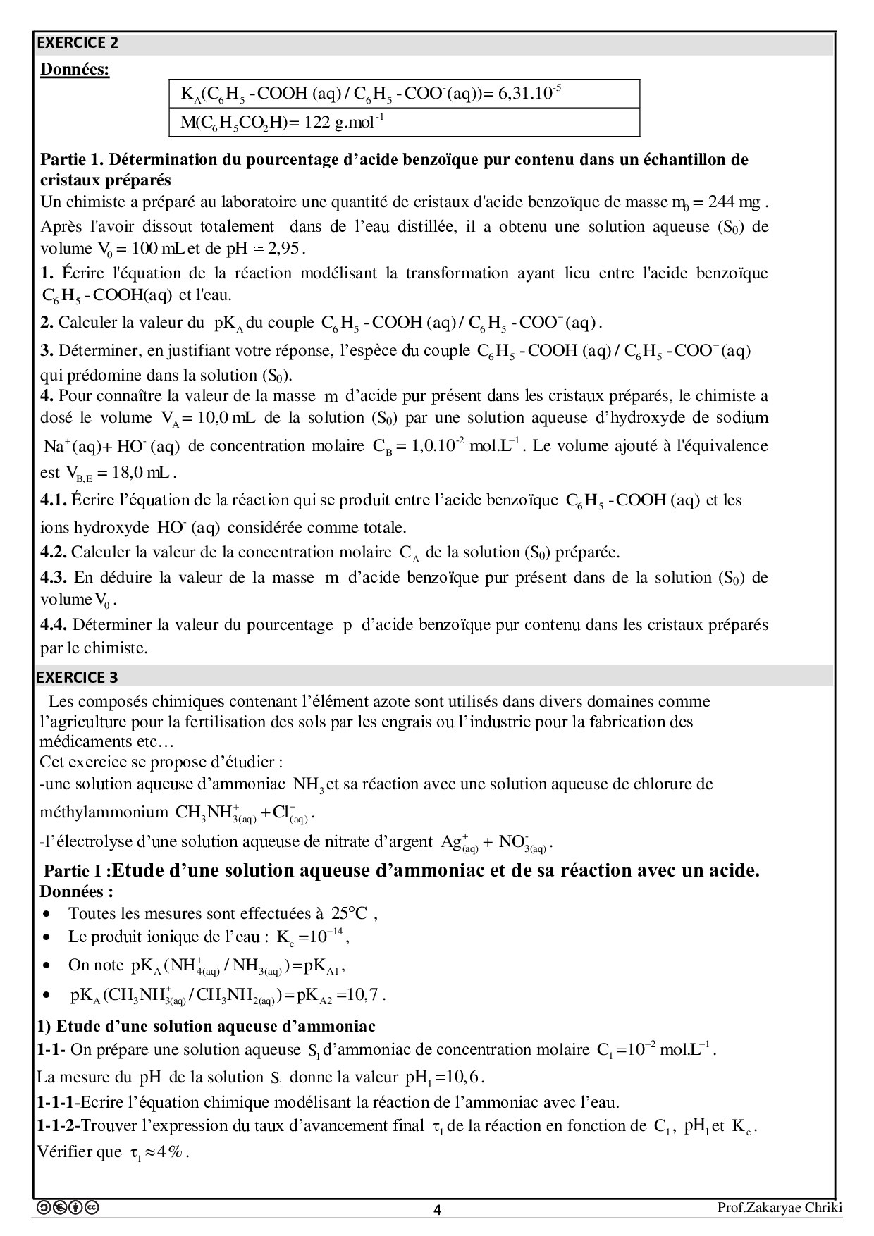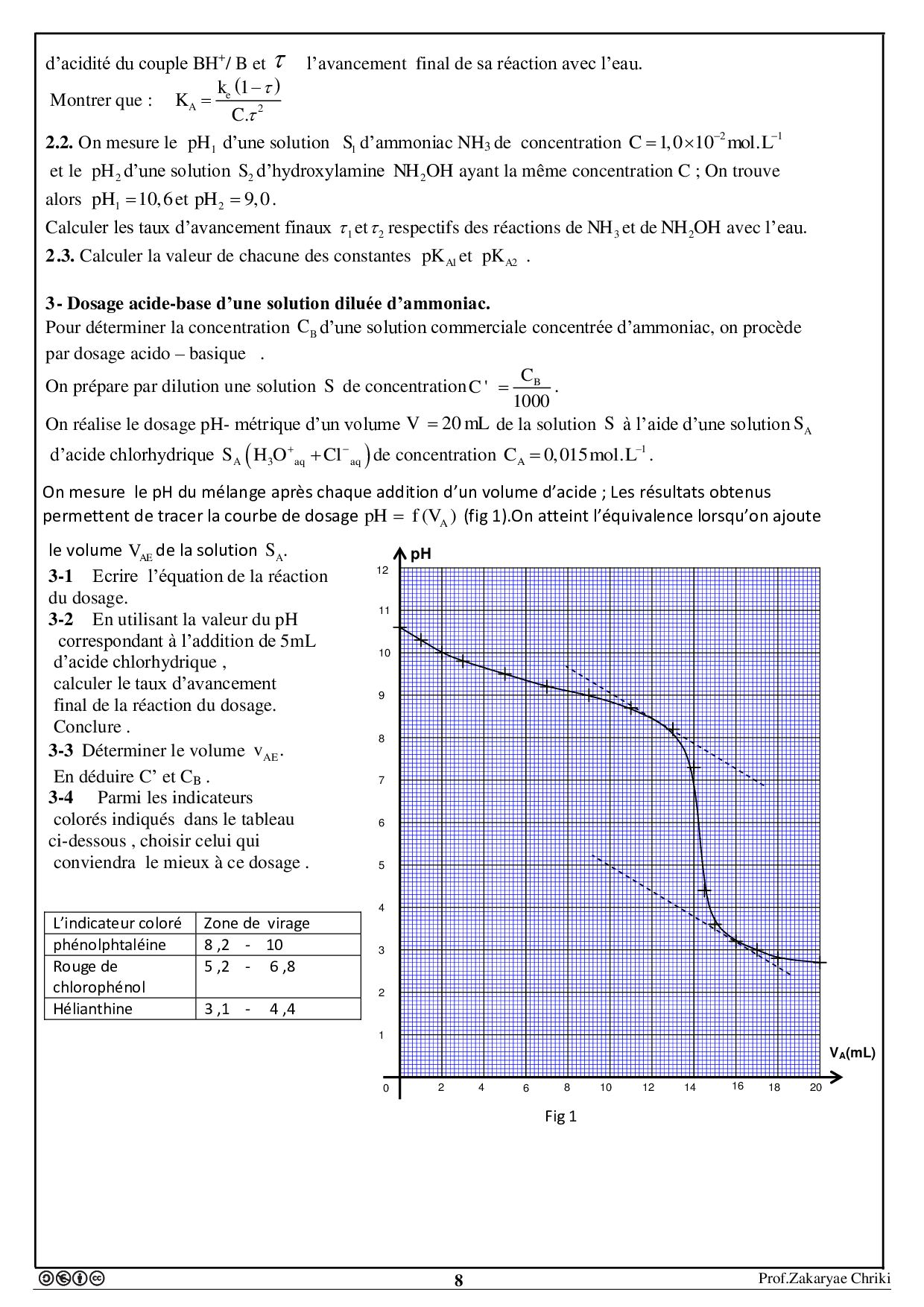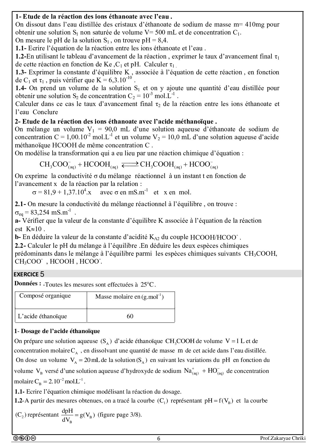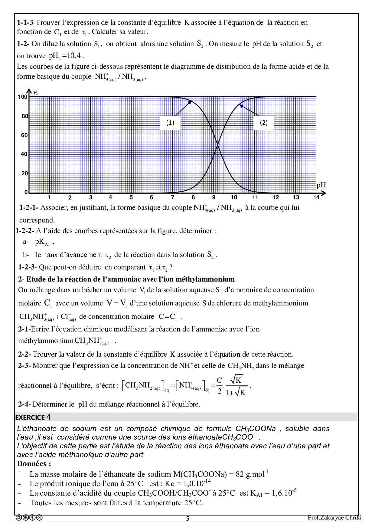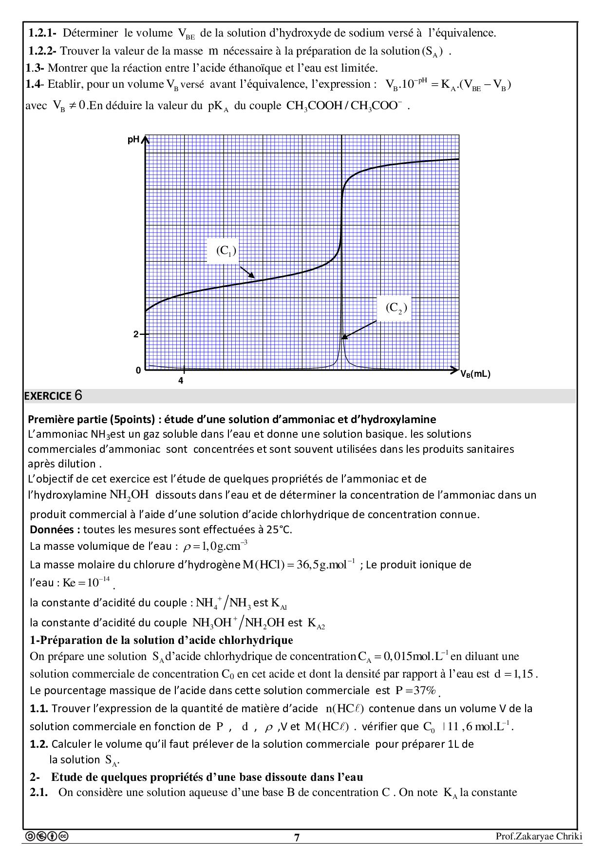 Transformations liées à des réactions acide-base - Exercices non corrigés 1
