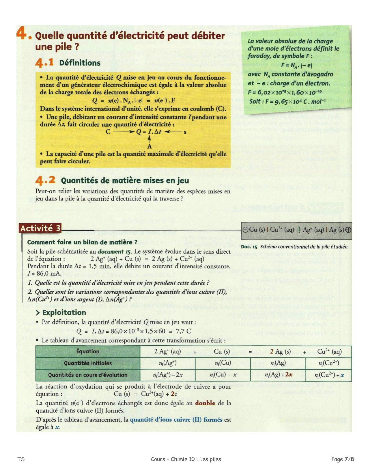 Transformations spontanées dans les piles et production d'énergie - Cours 2