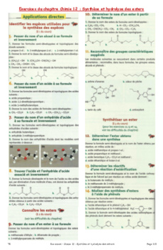 Réactions d'estérification et d'hydrolyse - Exercices non corrigés 4