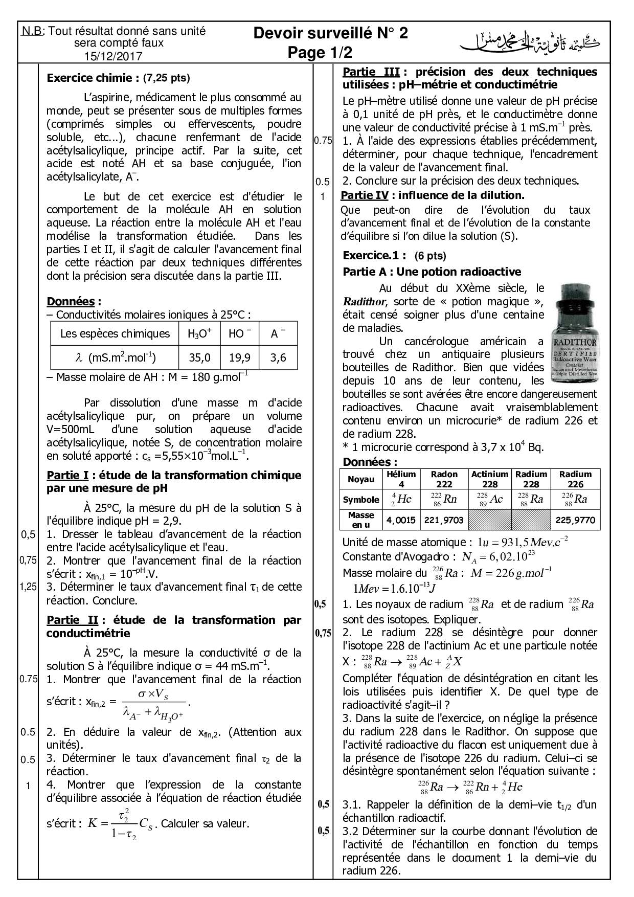 Devoirs 1er Semestre (SPC)