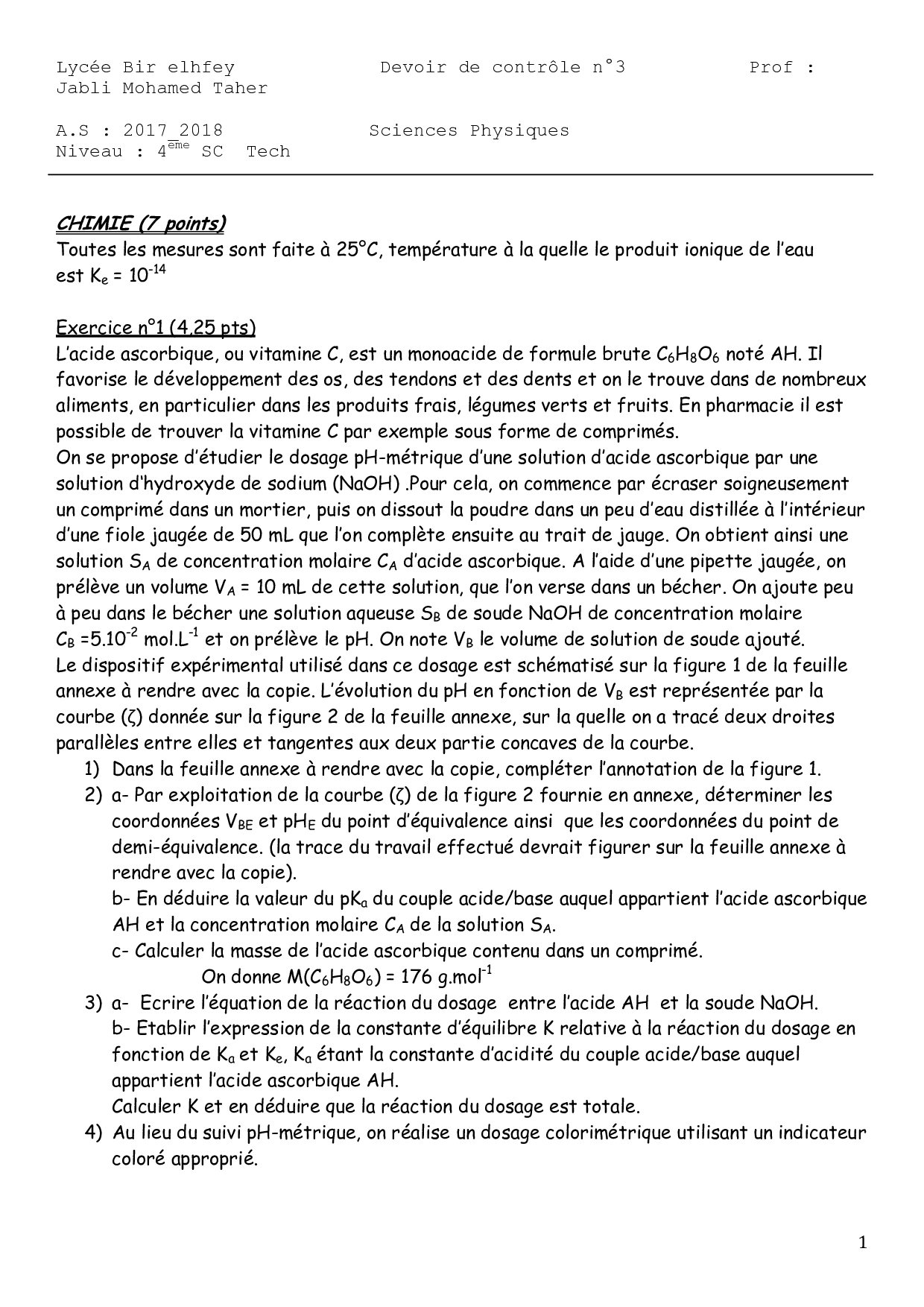 Devoir 3 Modèle 4 - Physique Chimie 2 Bac SPC Semestre 2