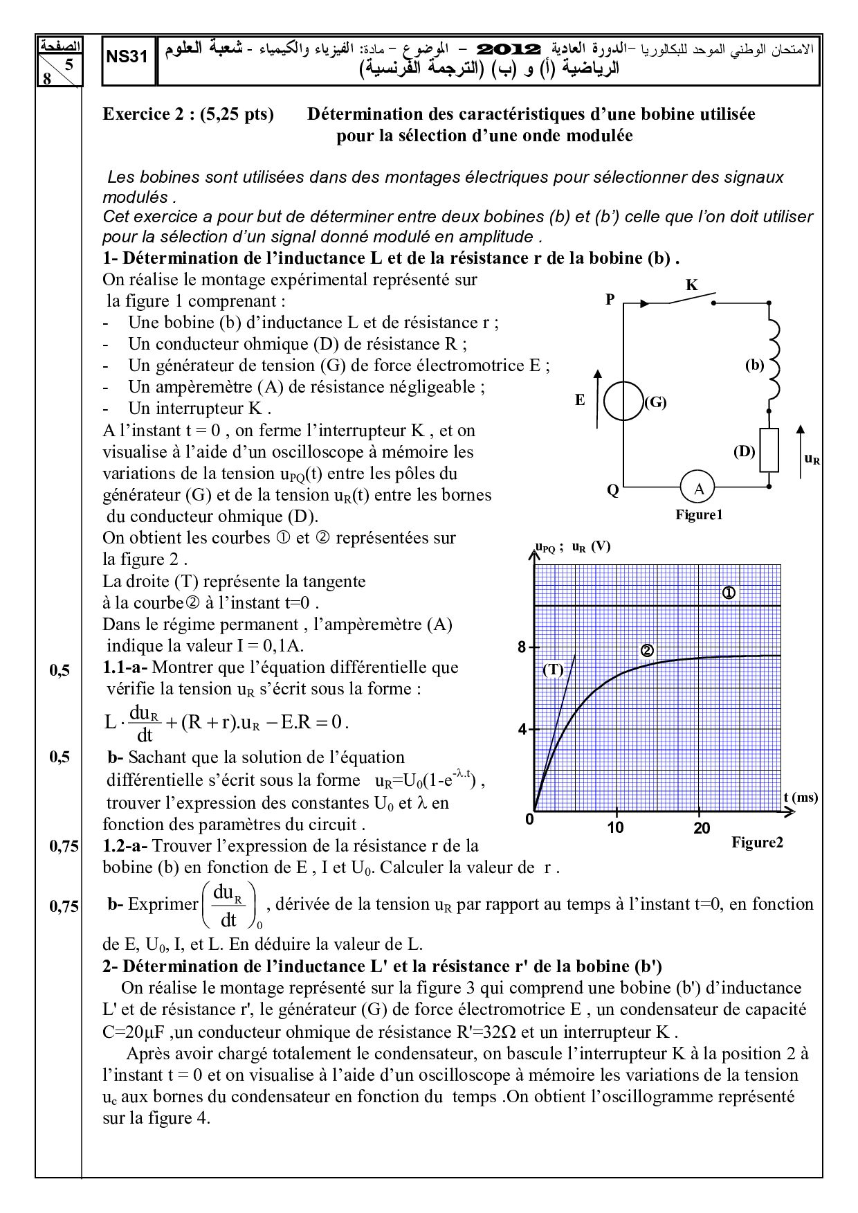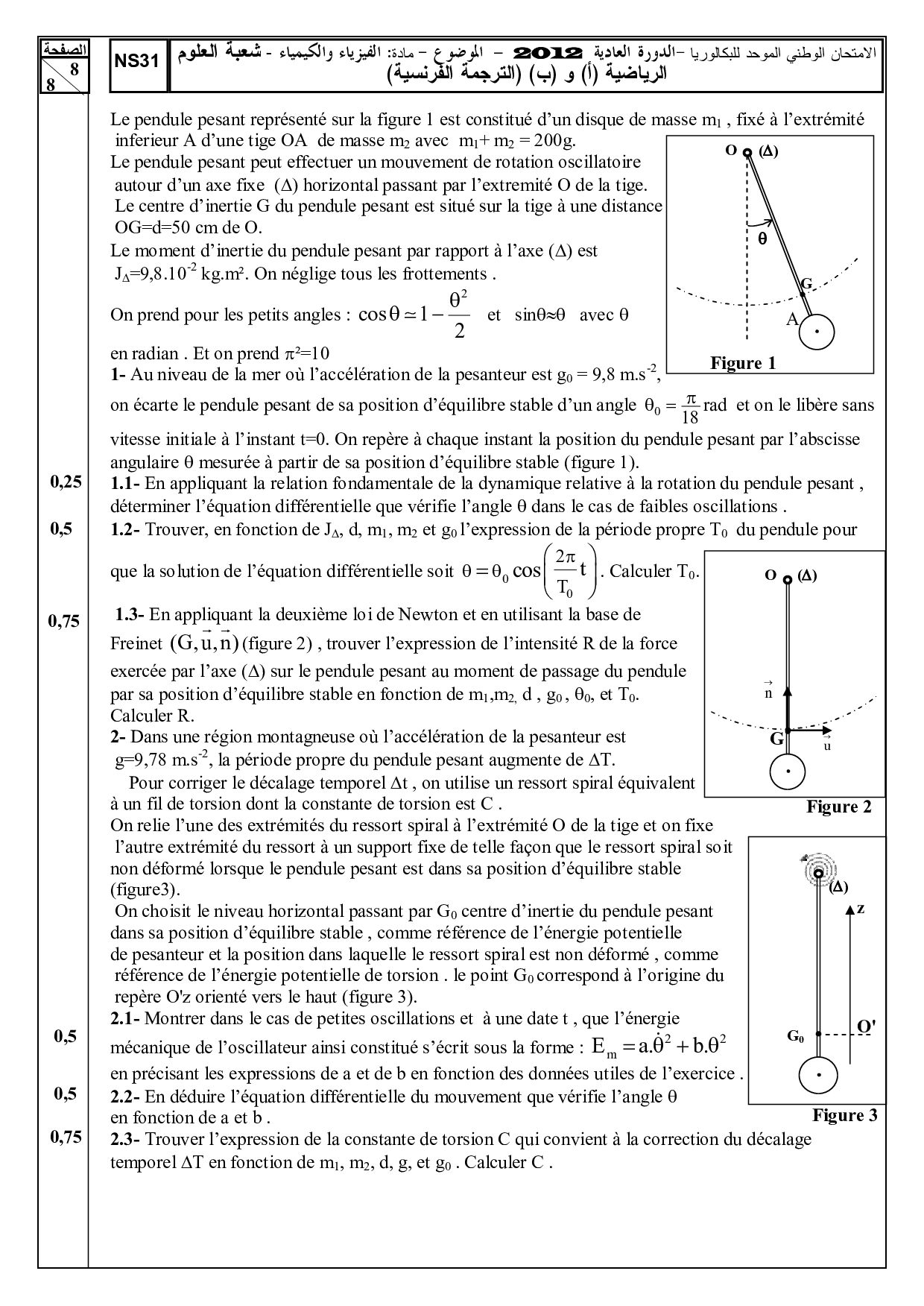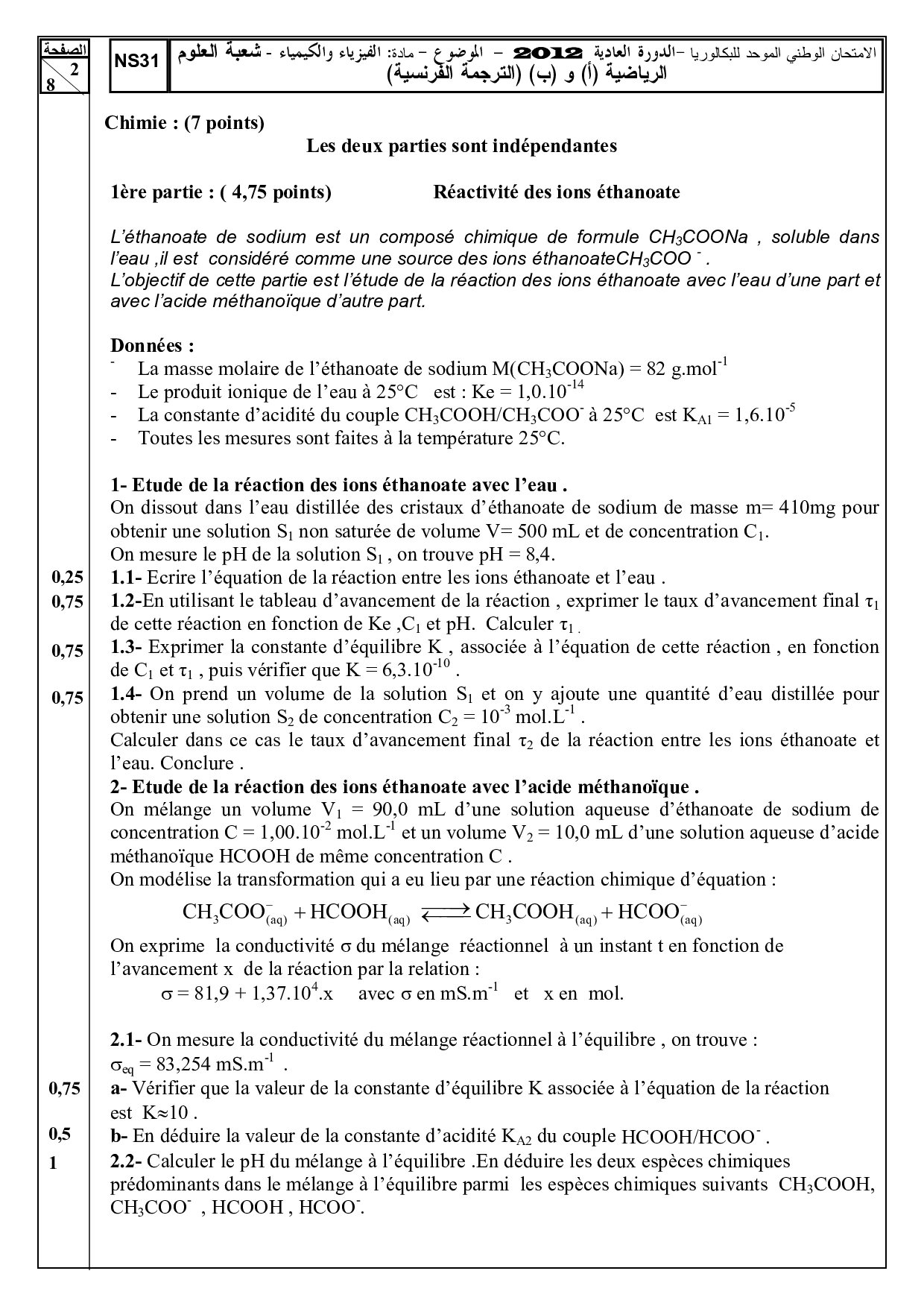 Examen National Physique-Chimie Sciences Maths 2012 Normale - Sujet