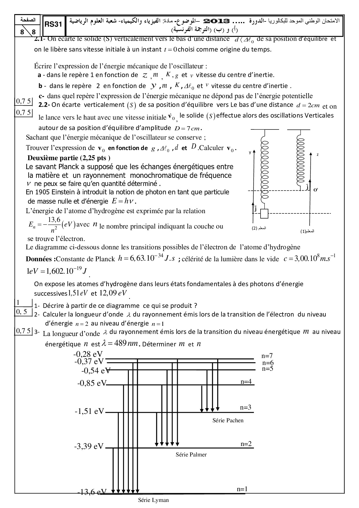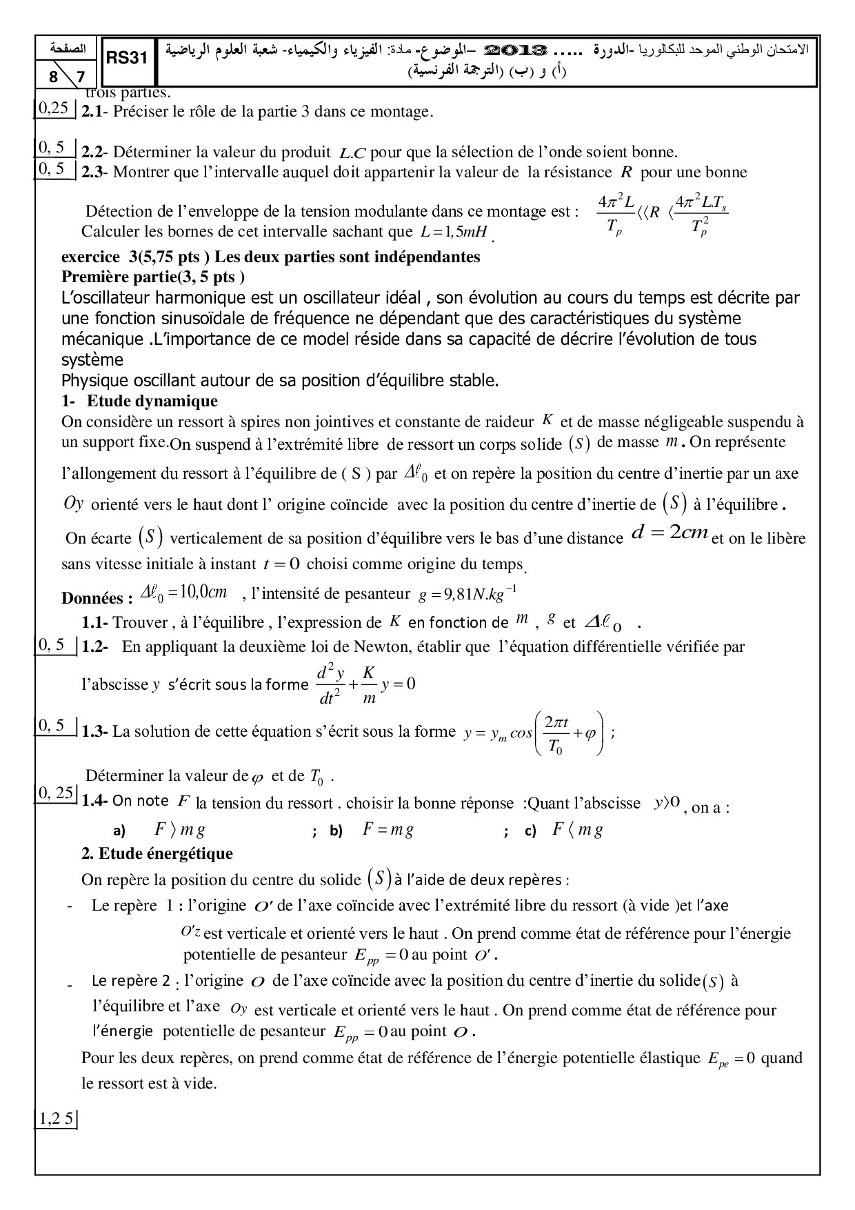 Examen National Physique-Chimie Sciences Maths 2013 Rattrapage - Sujet